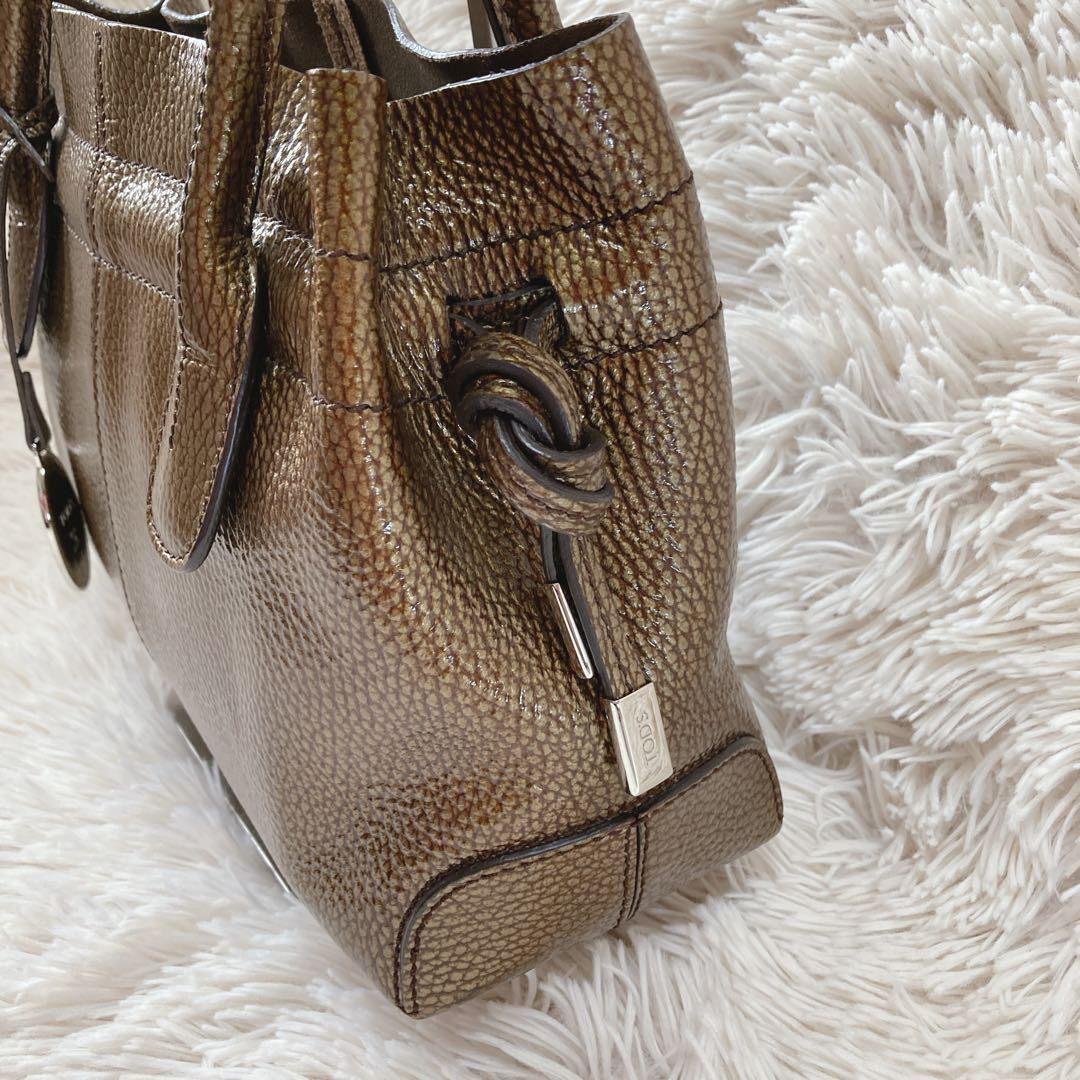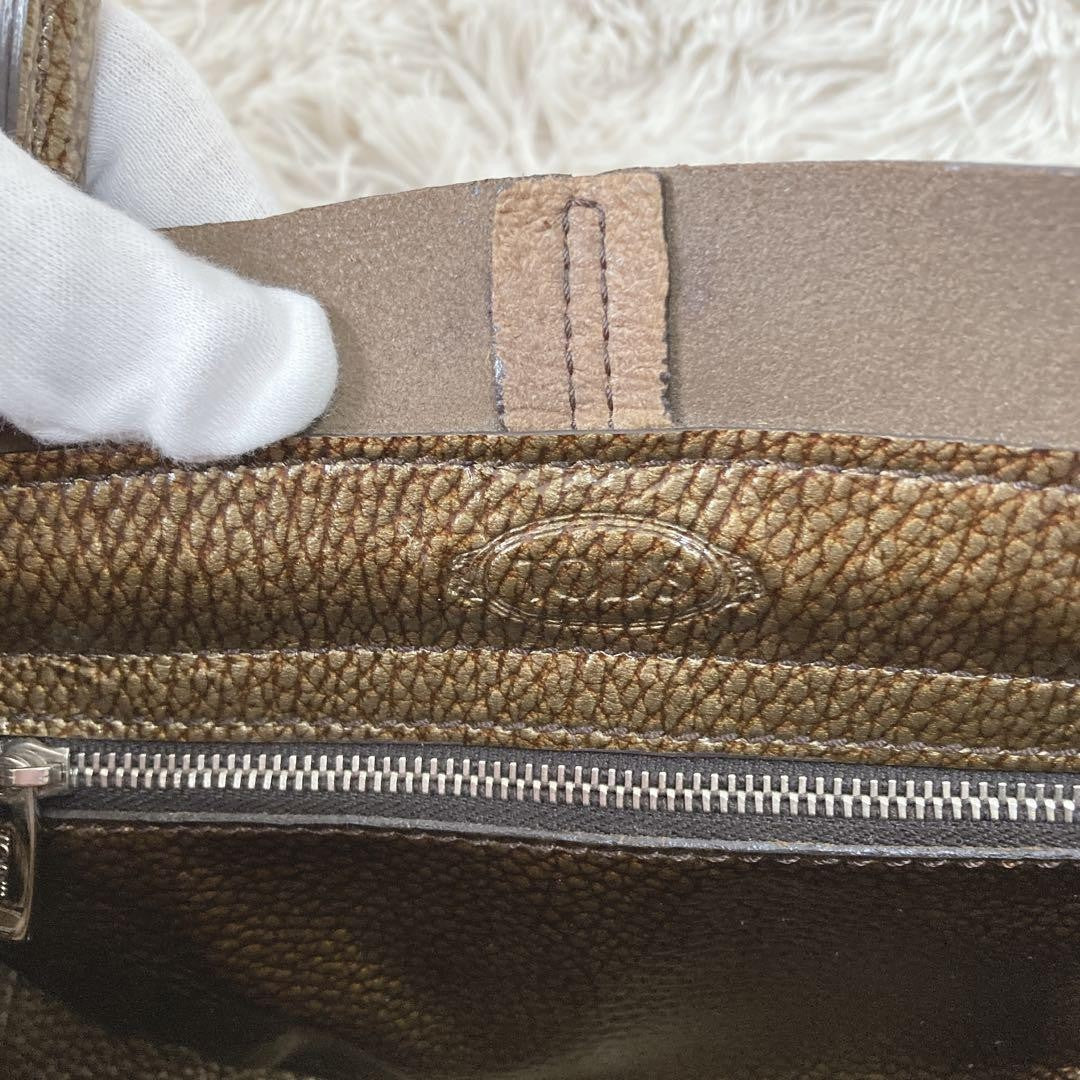 TOD'S Hand Bag Tote Purse Leather Gold Authentic