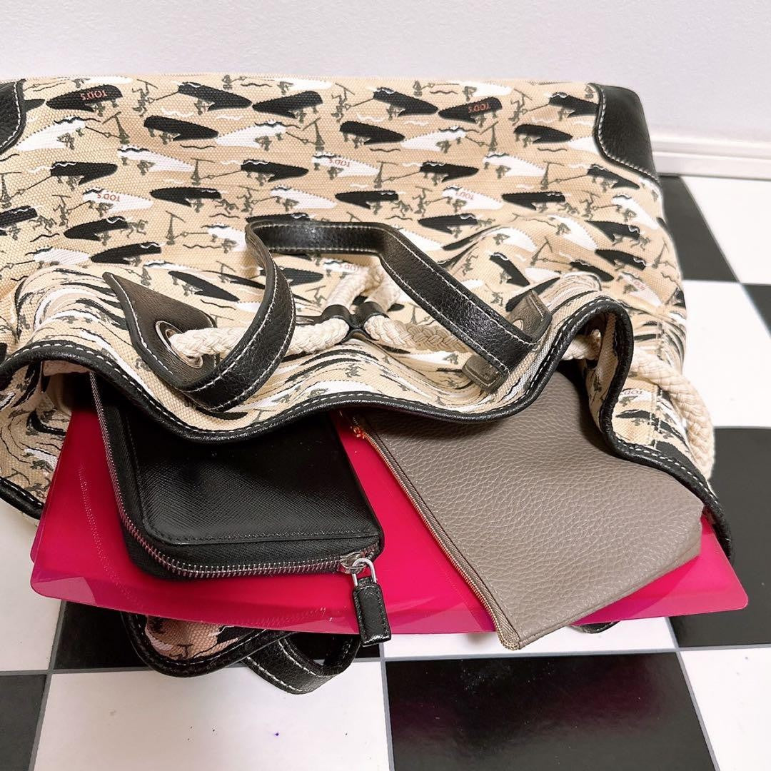 The wallet and pouches inside the bag are shown to give an idea of their size, so they are not included.