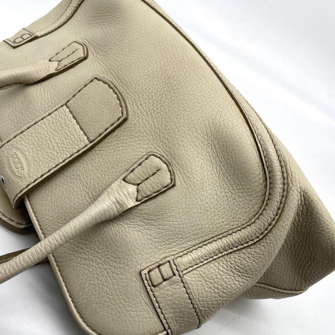 TOD'S Hand Bag Tote Purse Leather Off White Authentic