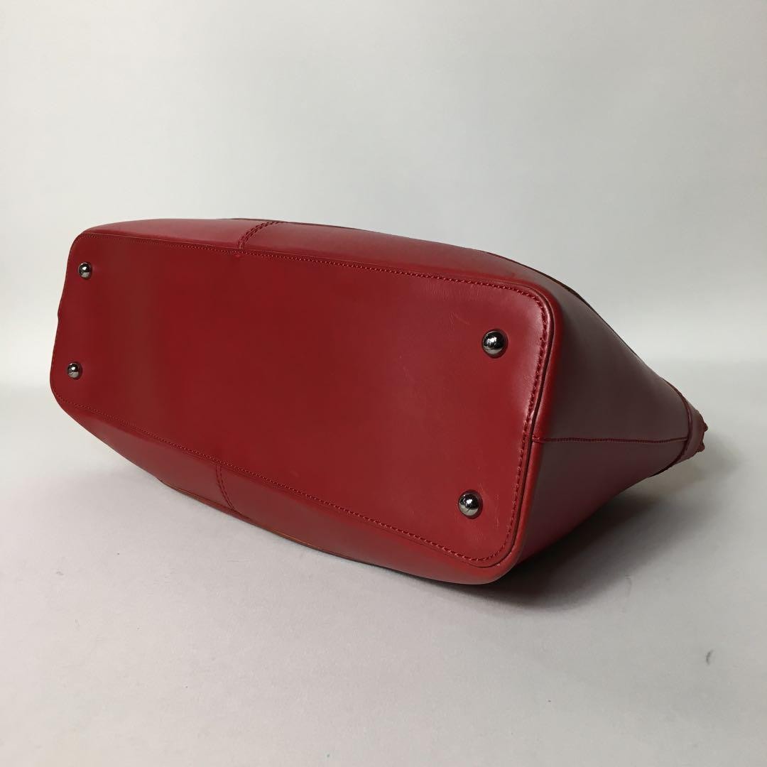TOD'S Hand Bag Tote Purse Leather Red Authentic