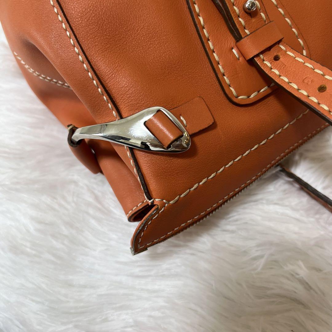 TOD'S Hand Bag Tote Purse Mini Boston Bag Leather Orange Authentic