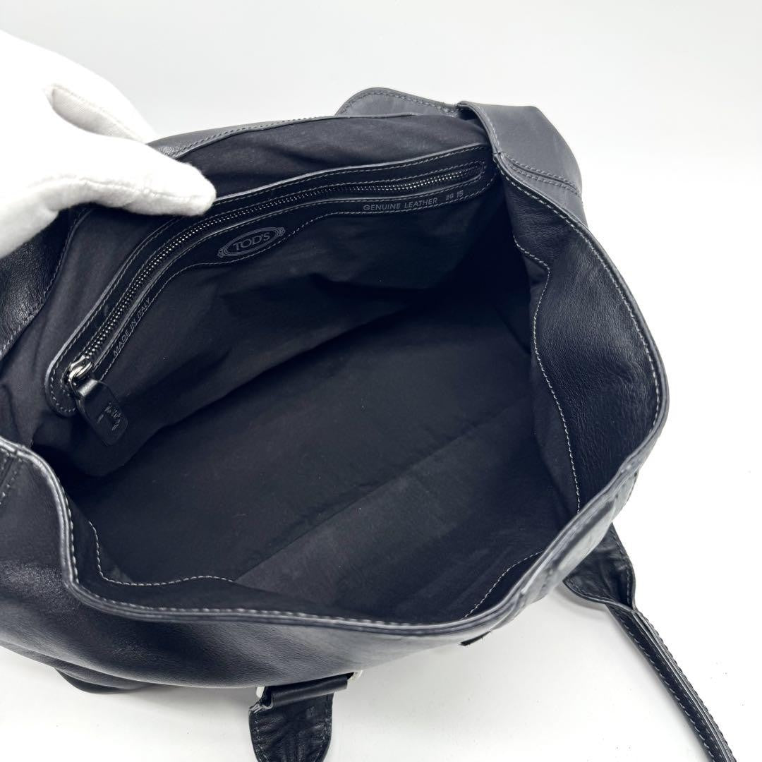 TOD'S Hand Bag Tote Purse Turn Lock Leather Black Authentic