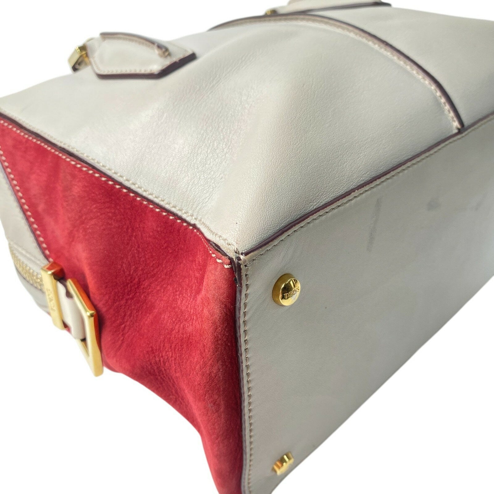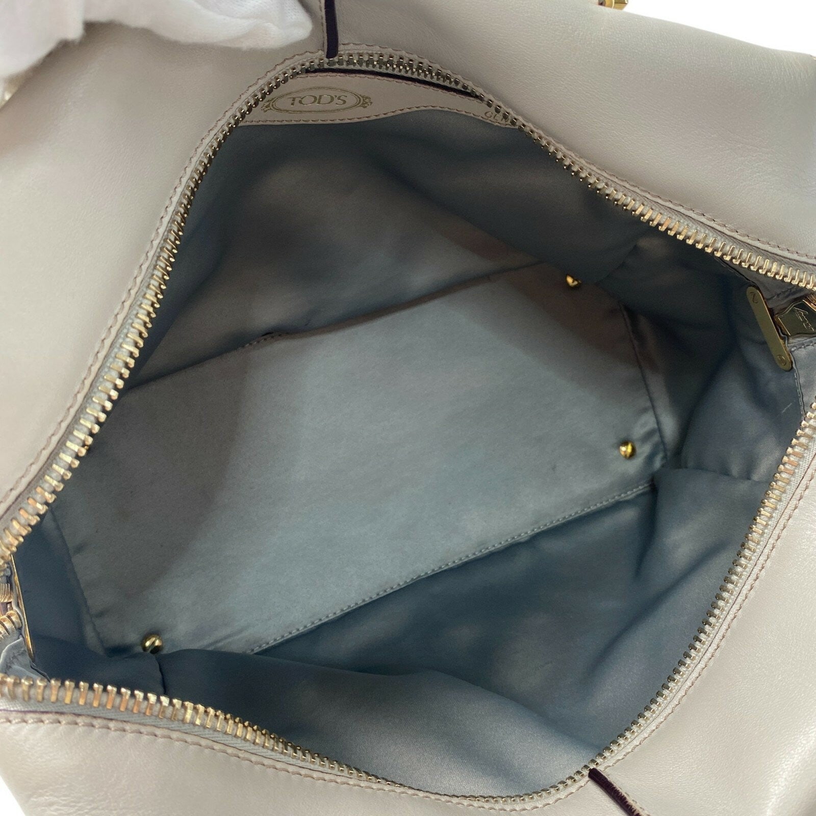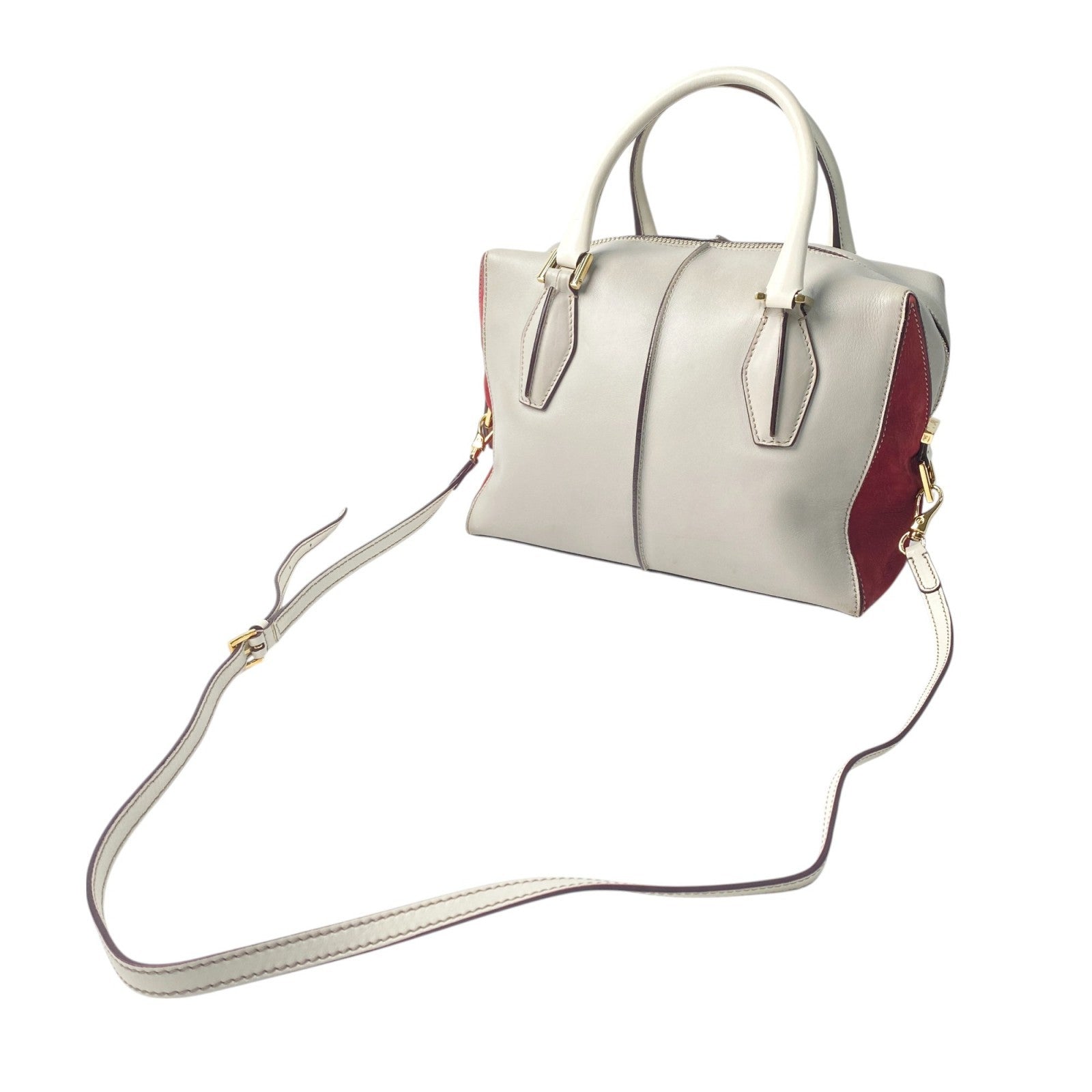 TOD'S Hand Shoulder Bag Tote Purse 2way D-Styling Leather Gray Wine Red Auth