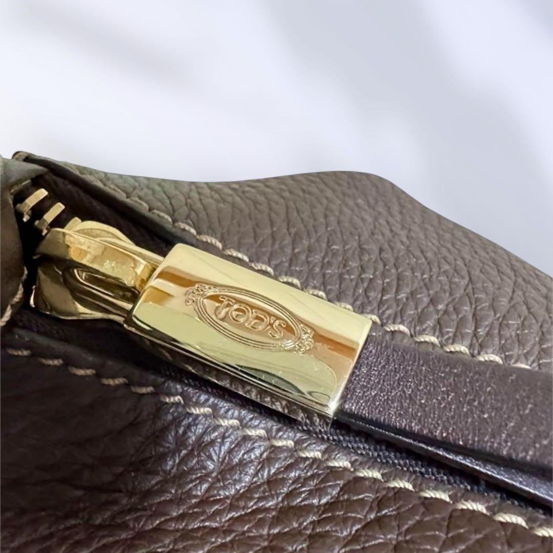 TOD'S Hand Shoulder Bag Tote Purse 2way Leather Brown Authentic