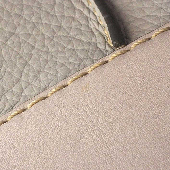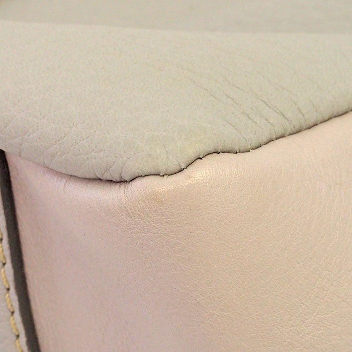 Exterior: Corner scuffs, slight discoloration, small scratches on metal fittings, light stains and scratches on handle, and dirt on shoulder strap