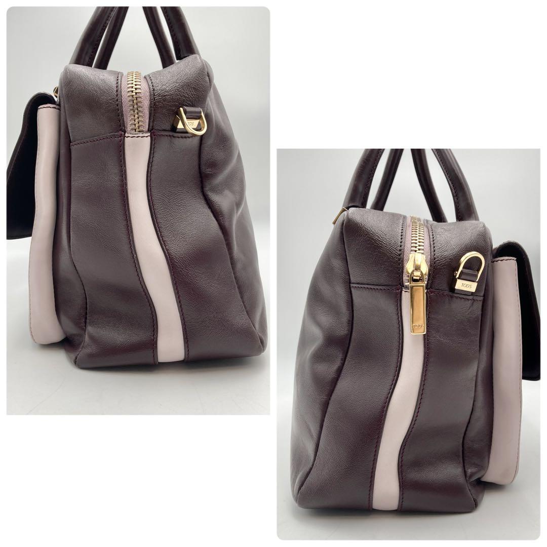 TOD'S Hand Shoulder Bag Tote Purse 2way Patent Leather Bordeaux Authentic