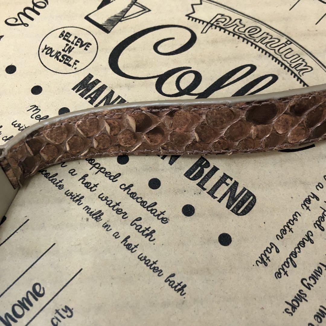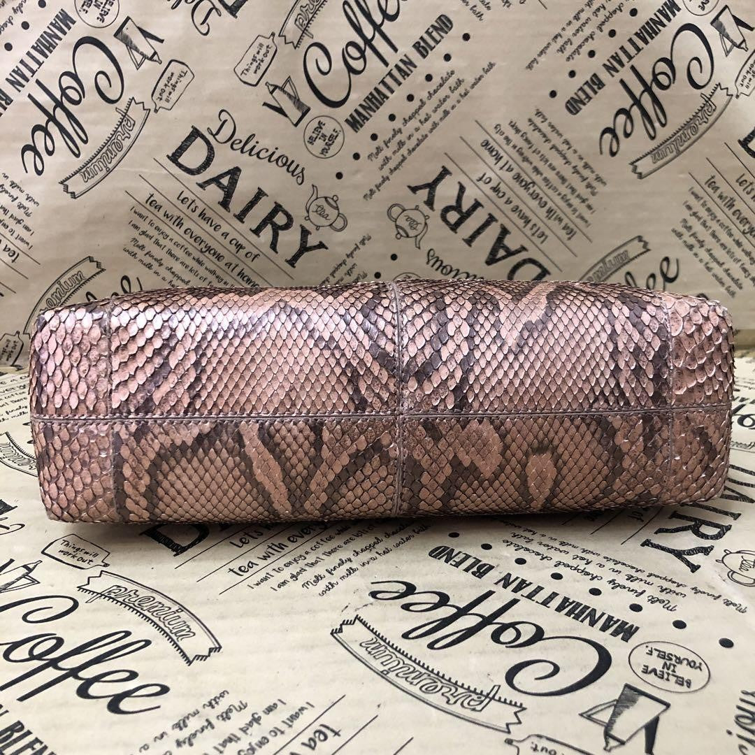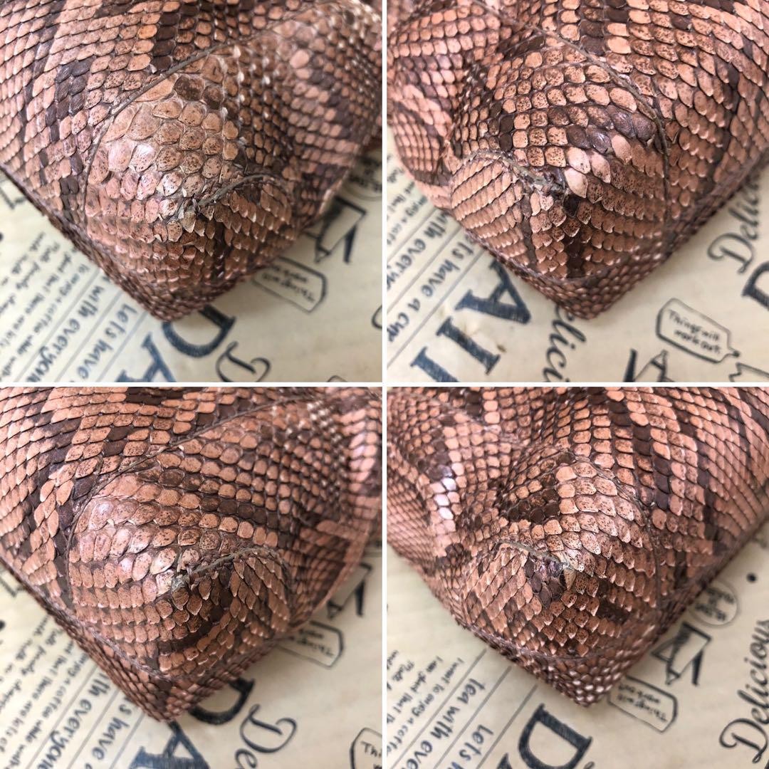 The exterior and handle are out of shape, and the python leather is peeling.