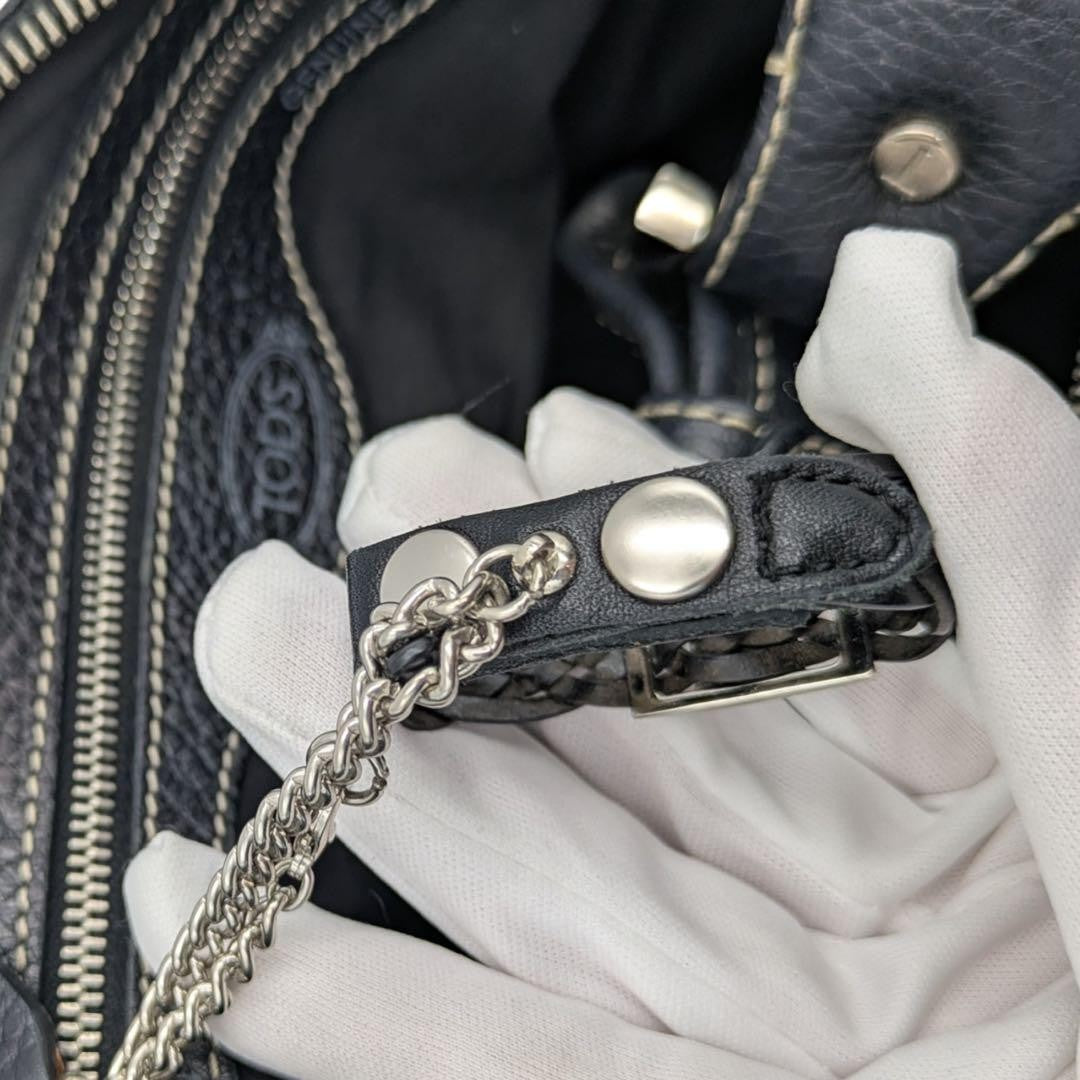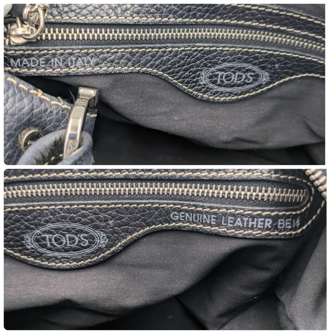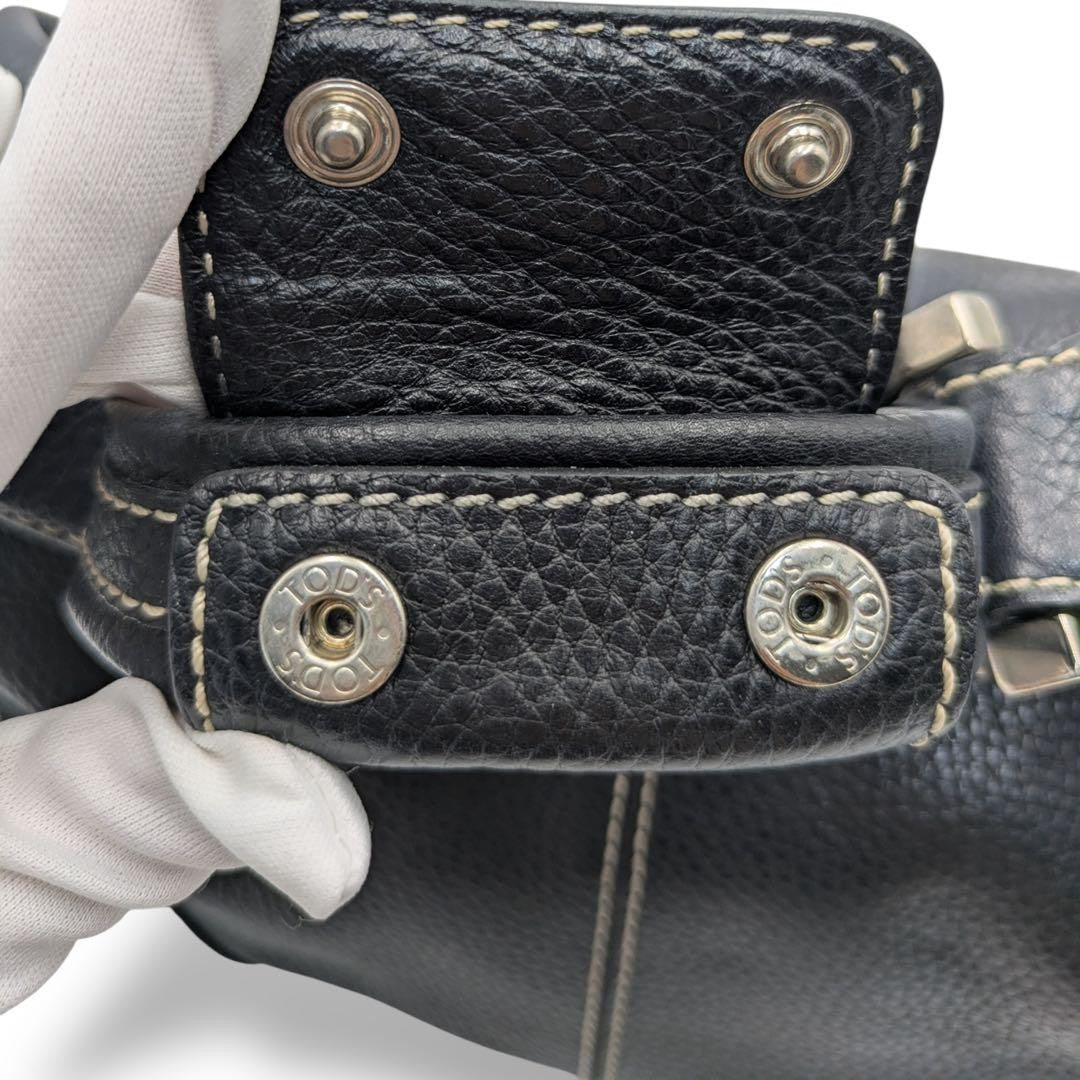 TOD'S Hand Shoulder Bag Tote Purse Leather Black Authentic