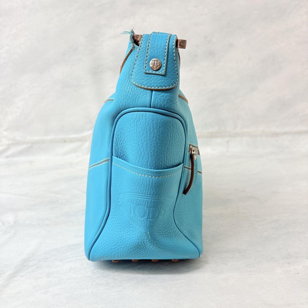 TOD'S Hand Shoulder Bag Tote Purse Leather Blue Authentic