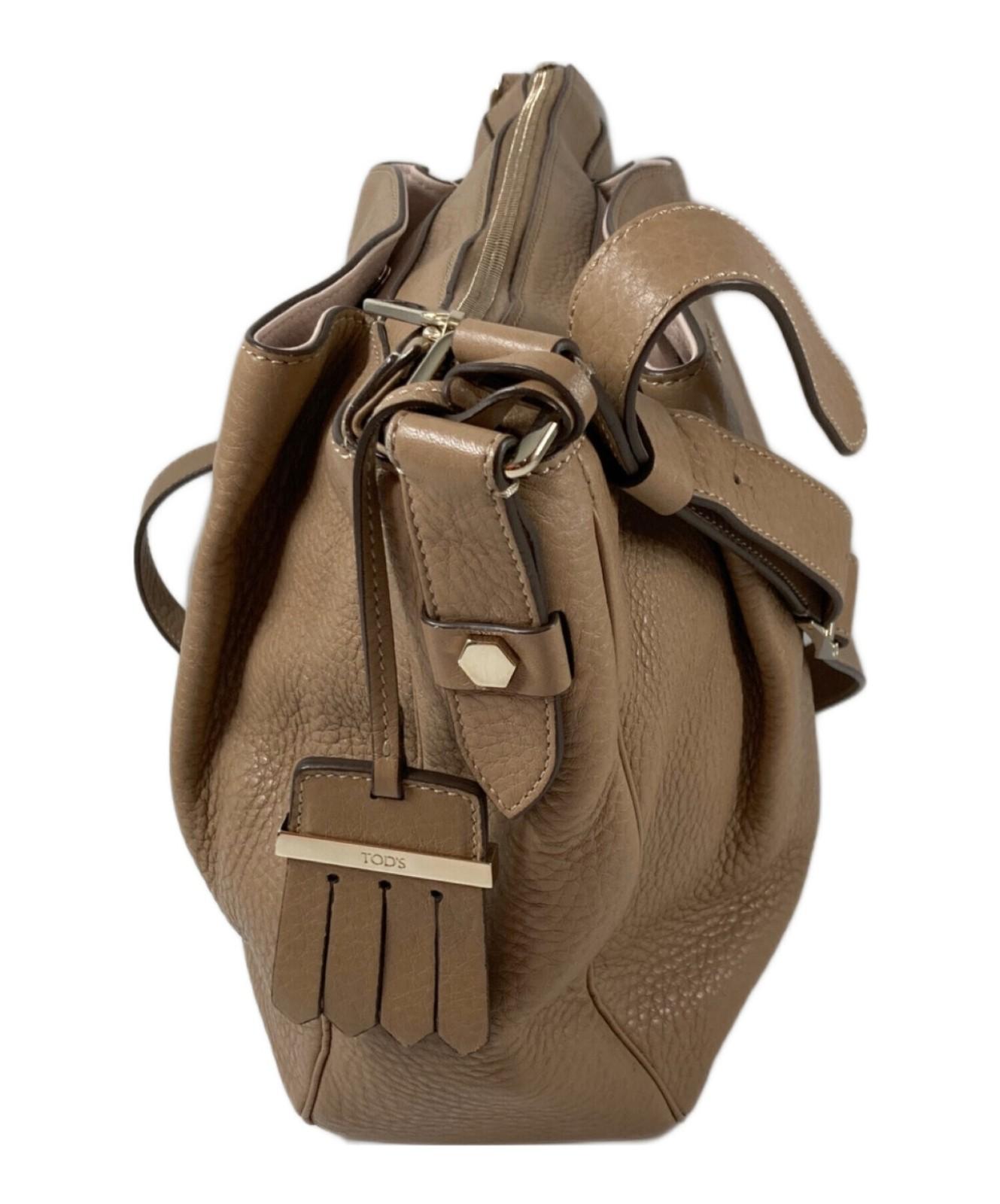 TOD'S Shoulder Bag Purse Leather Beige Authentic