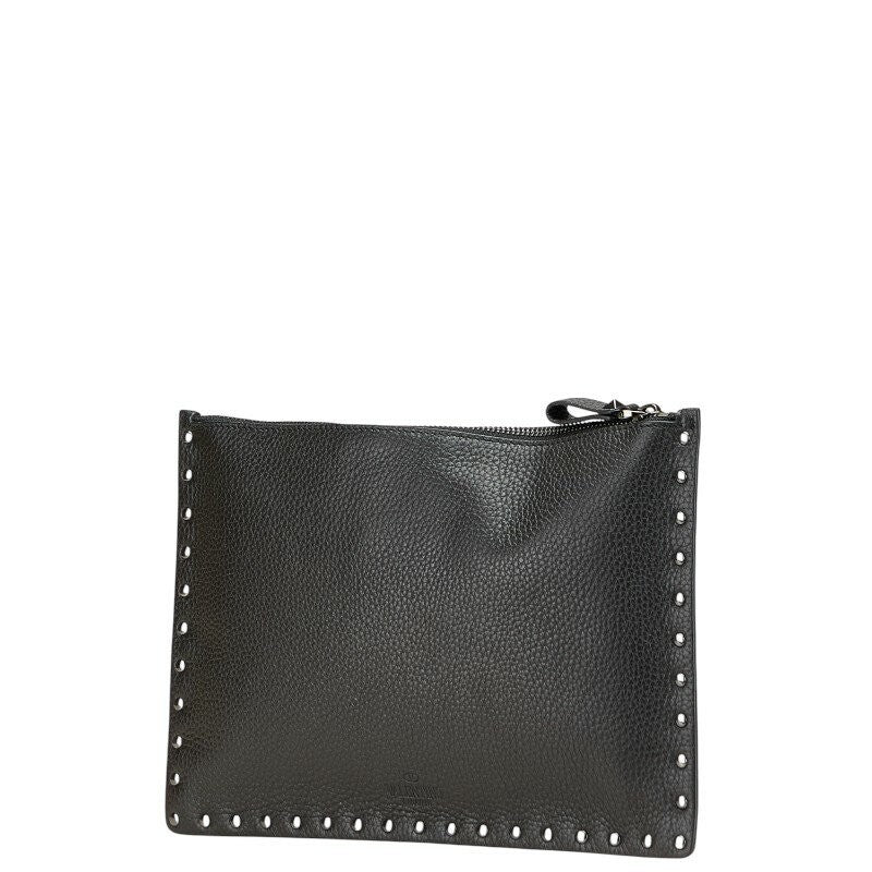 Valentino Clutch Bag Second Bag Rockstuds Leather Black Authentic