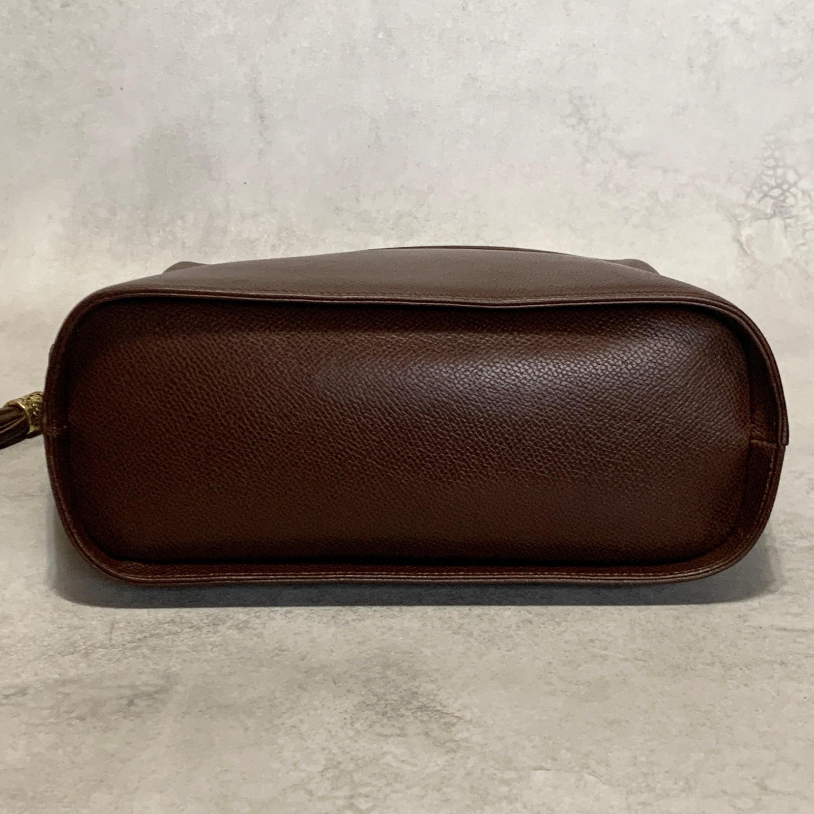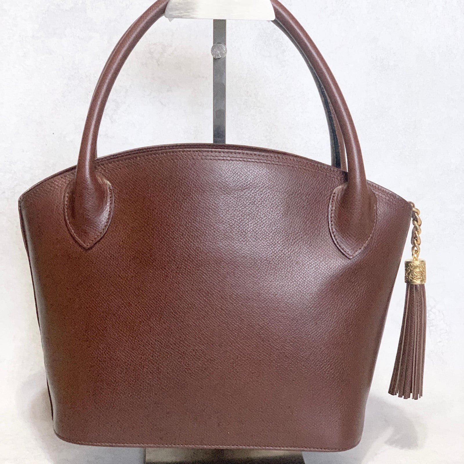 Valentino Garavani Bag Tassel Logo Hand Tote Purse Leather Brown Gold Authentic