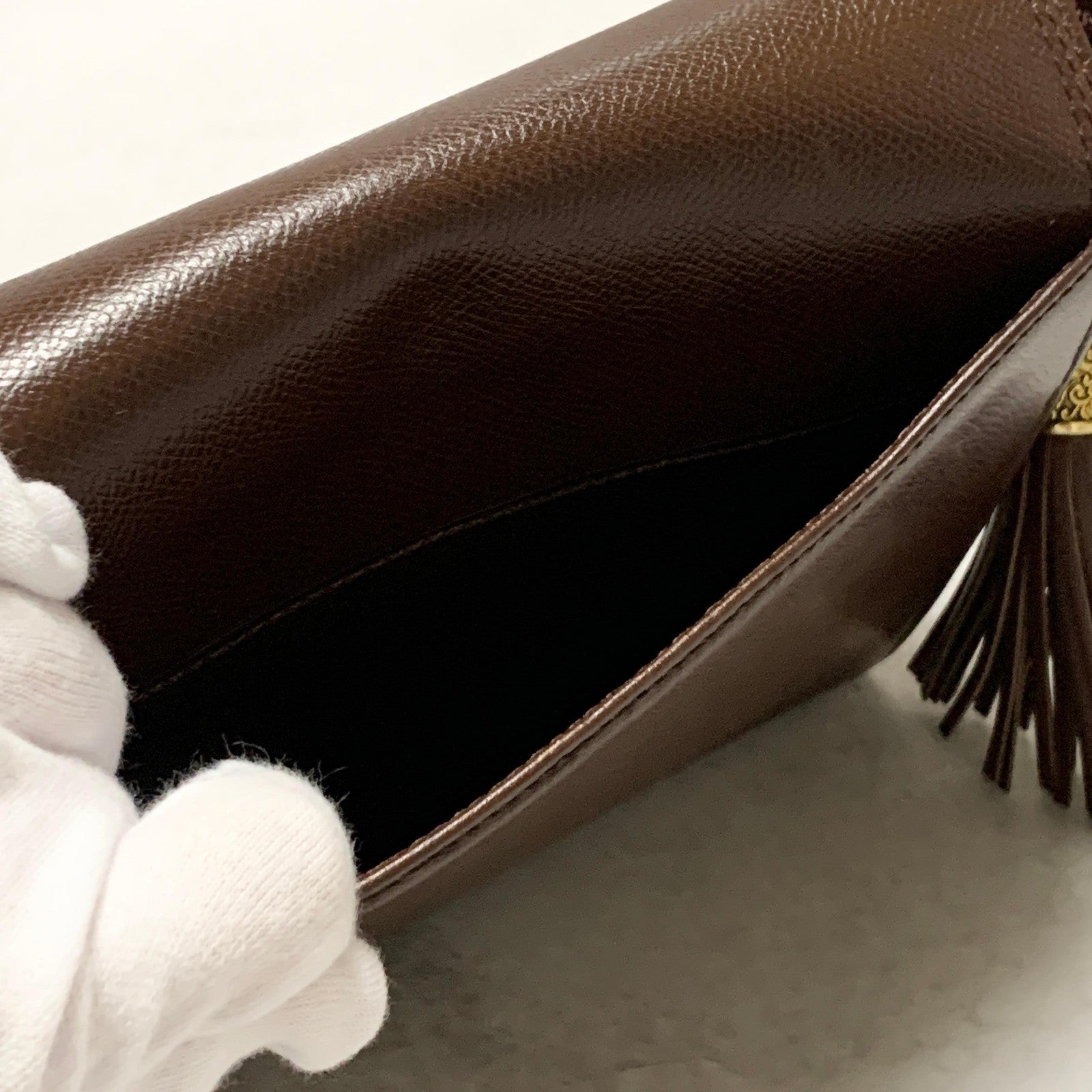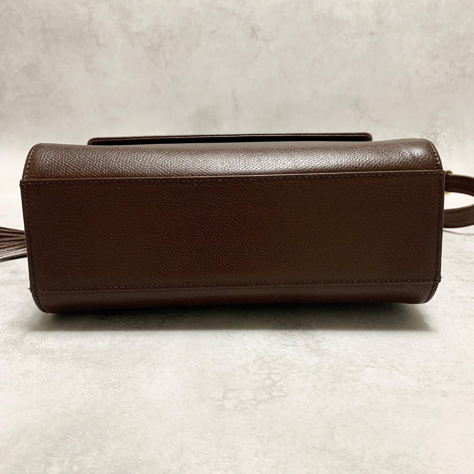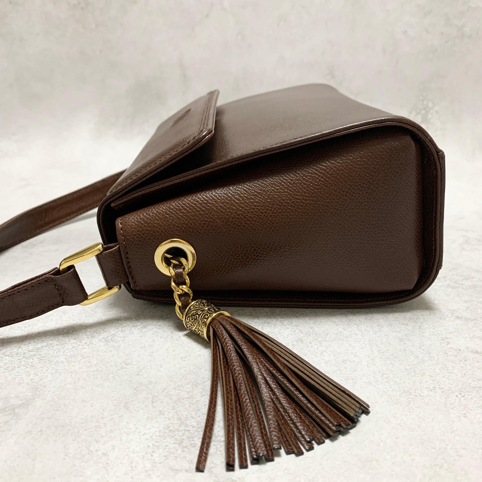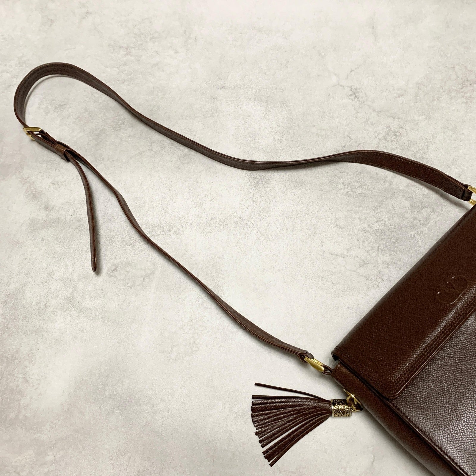 Valentino Garavani Bag Tassel Logo Shoulder Purse Leather Brown Gold Authentic
