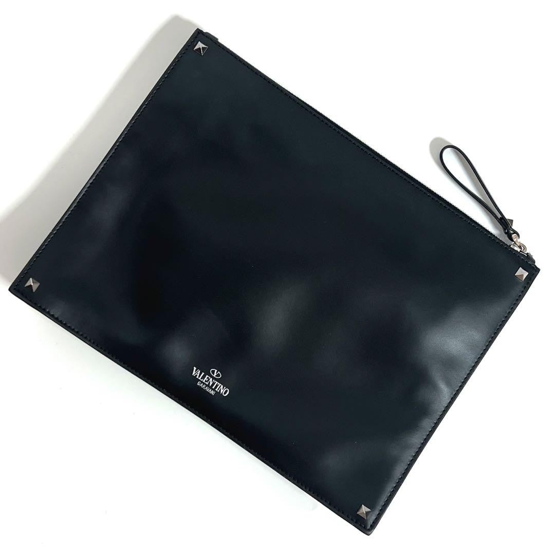 Valentino Garavani Clutch Bag Second Bag VLTN Leather Black Authentic