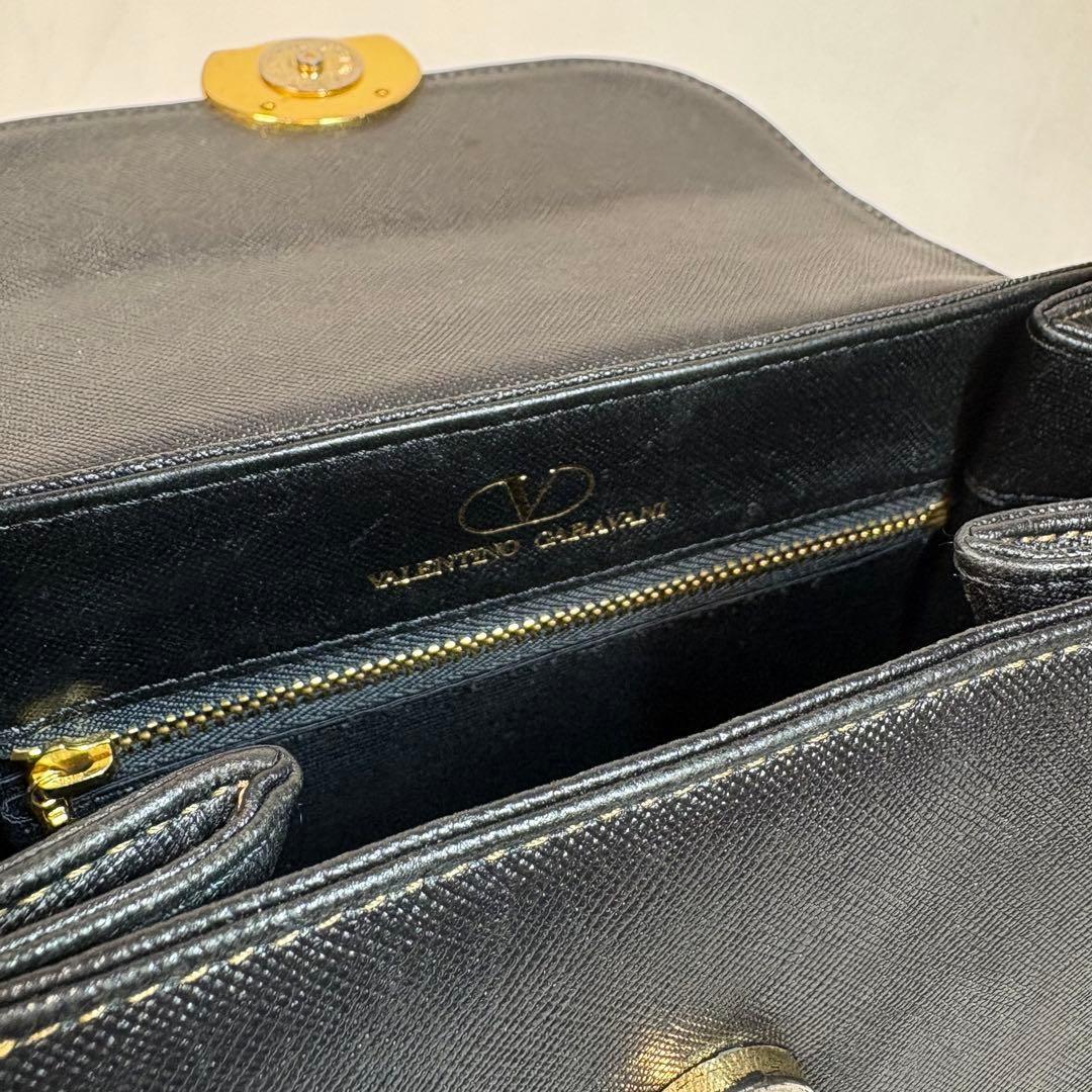 Valentino Garavani Hand Bag Tote Purse 2way Logo Leather Black Authentic
