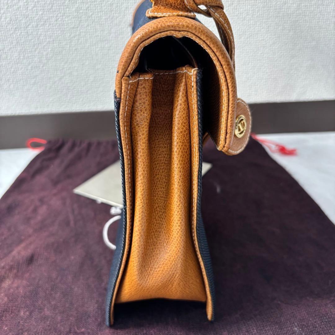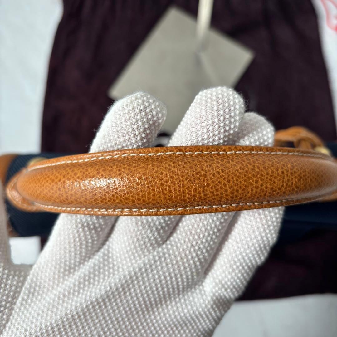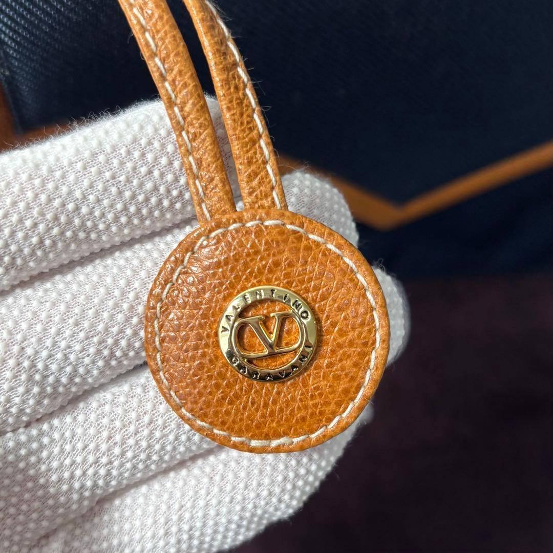 Valentino Garavani Hand Bag Tote Purse Charm Leather Canvas Navy Authentic