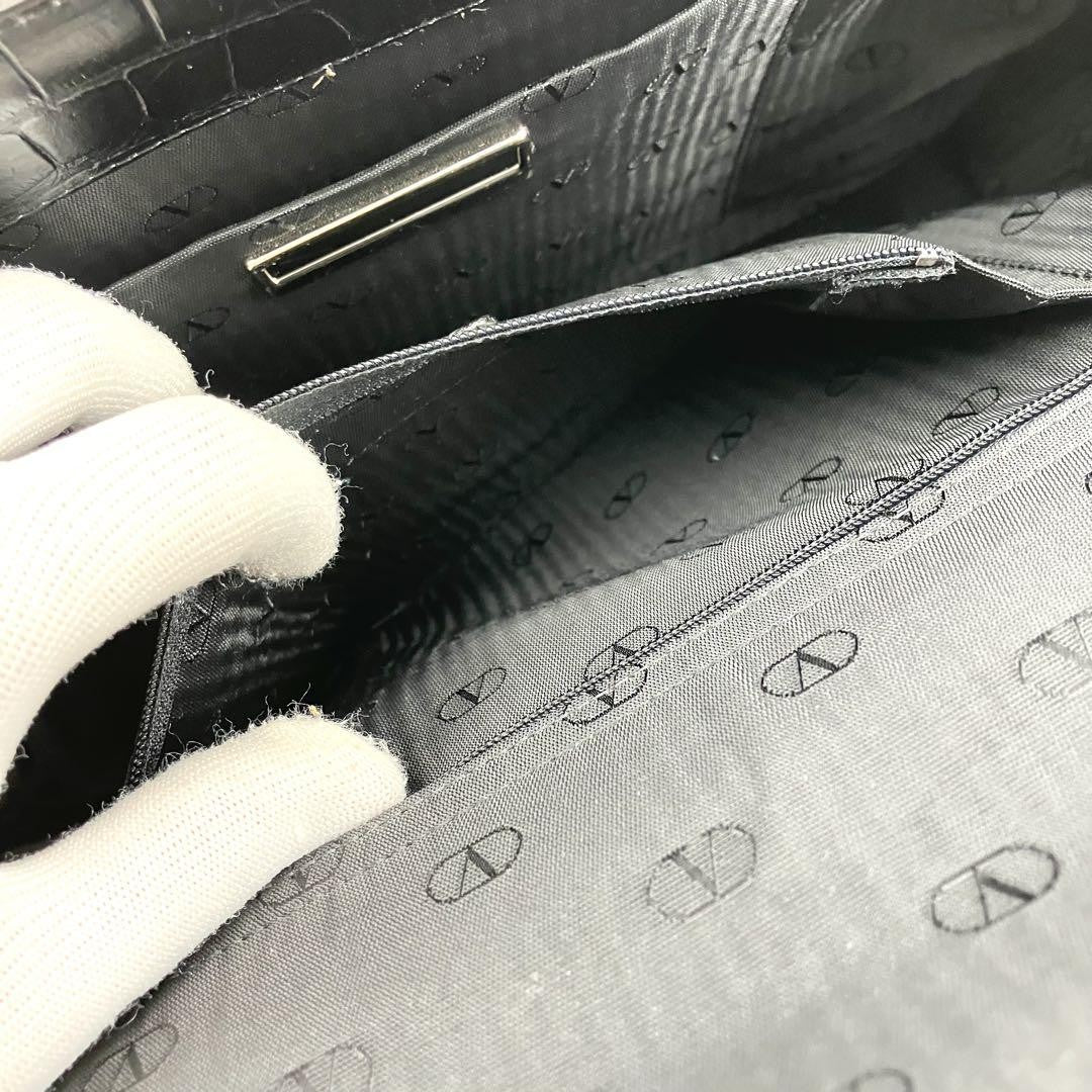 Valentino Garavani Hand Bag Tote Purse Leather Black Authentic