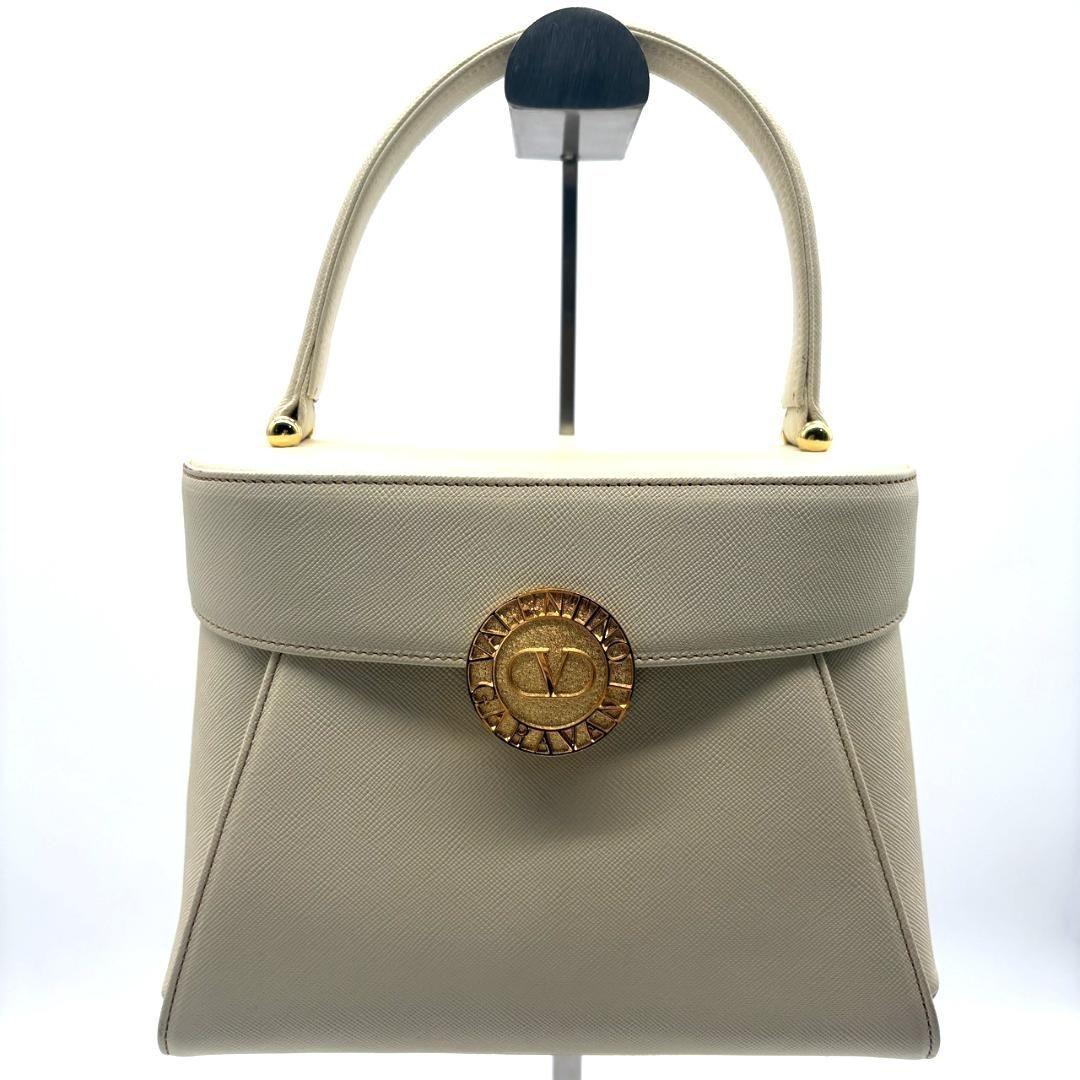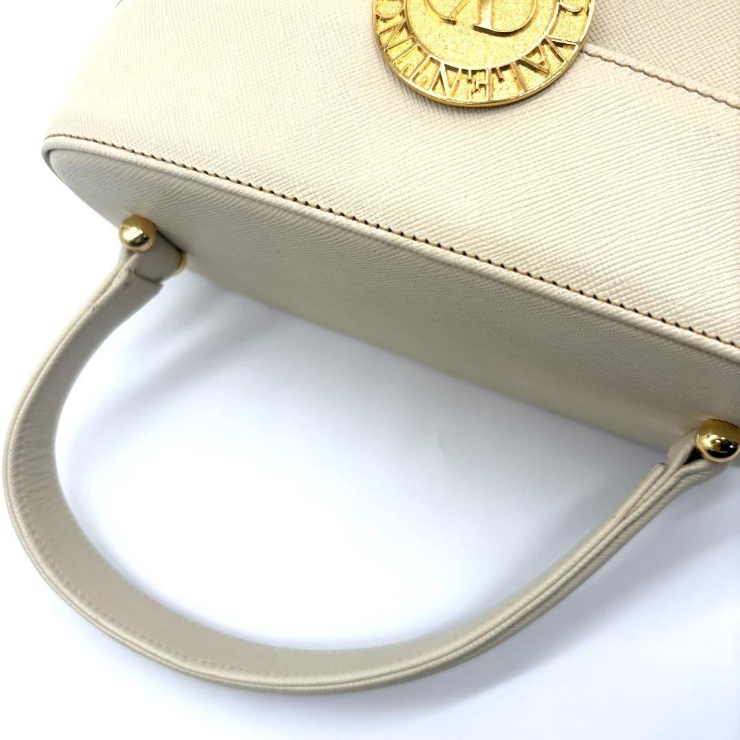 Valentino Garavani Hand Bag Tote Purse Logo Leather Beige Authentic