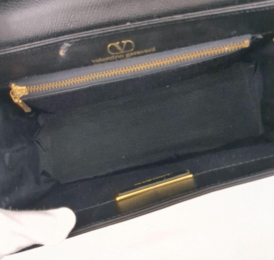 Valentino Garavani Hand Bag Tote Purse Logo Leather Black Authentic