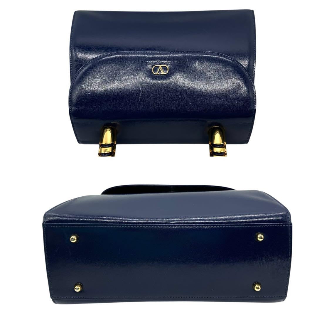 Valentino Garavani Hand Bag Tote Purse Logo Leather Blue Authentic
