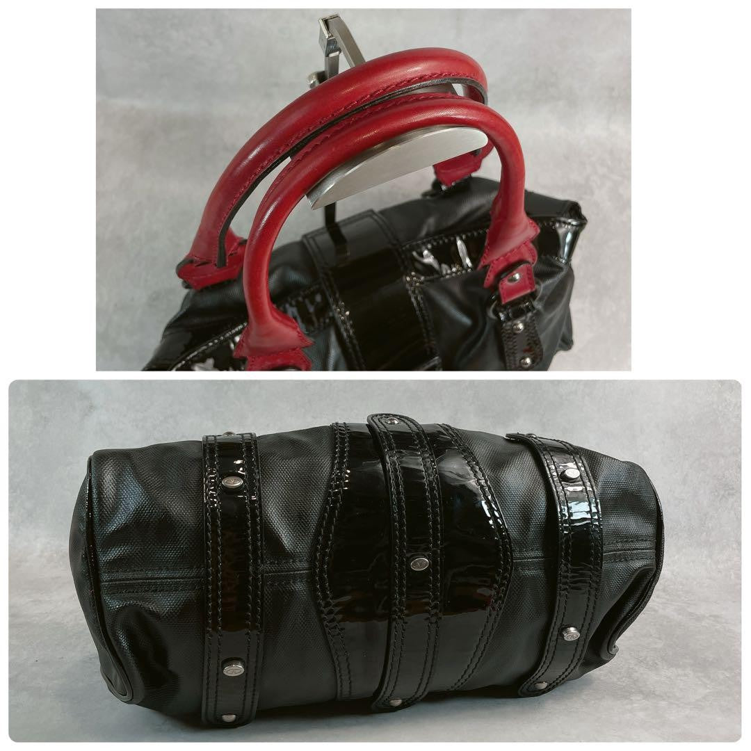 Valentino Garavani Hand Bag Tote Purse Logo PVC Leather Black Red Authentic