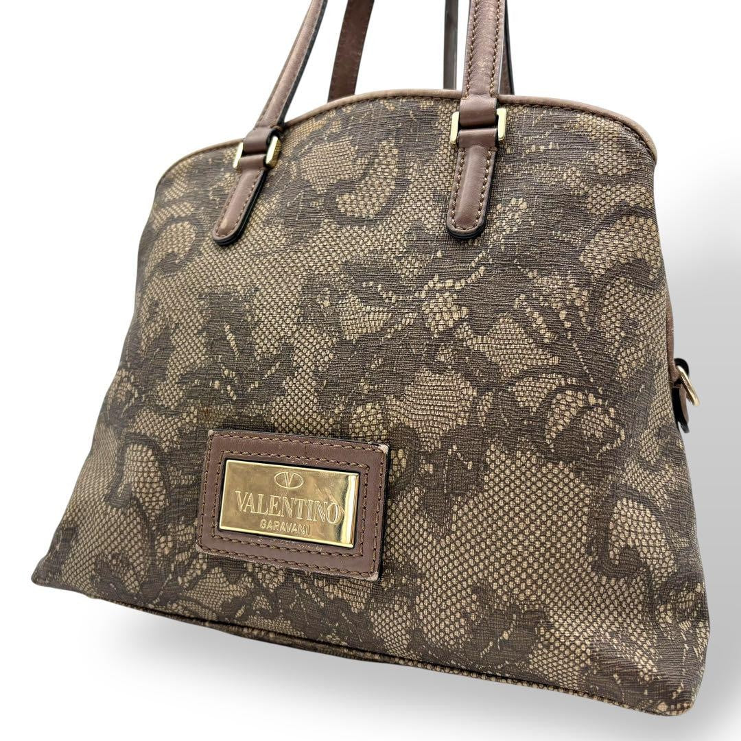 Valentino Garavani Hand Bag Tote Purse Logo PVC Leather Brown Authentic