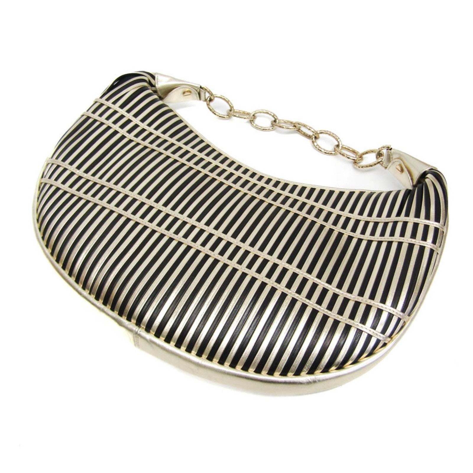Valentino Garavani Shoulder Bag Purse Leather Black Champagne Gold Authentic
