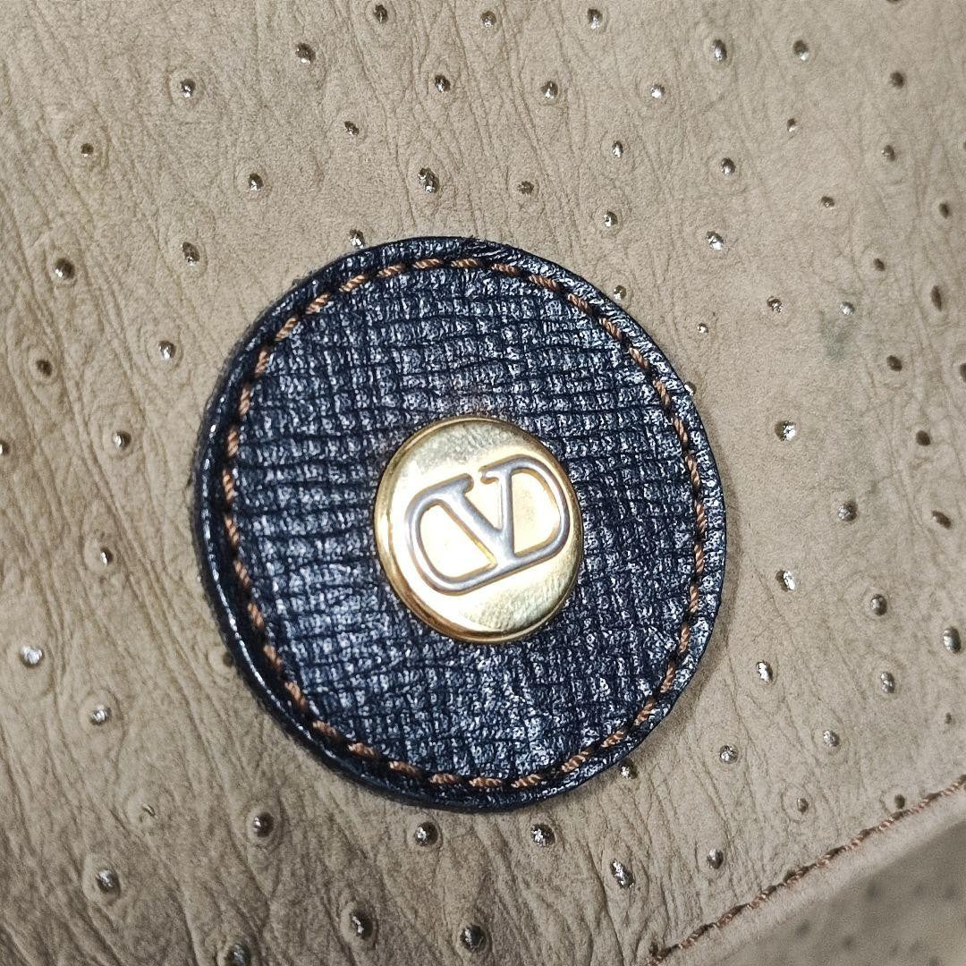 Valentino Garavani Shoulder Bag Purse Logo Leather Beige Gold Authentic