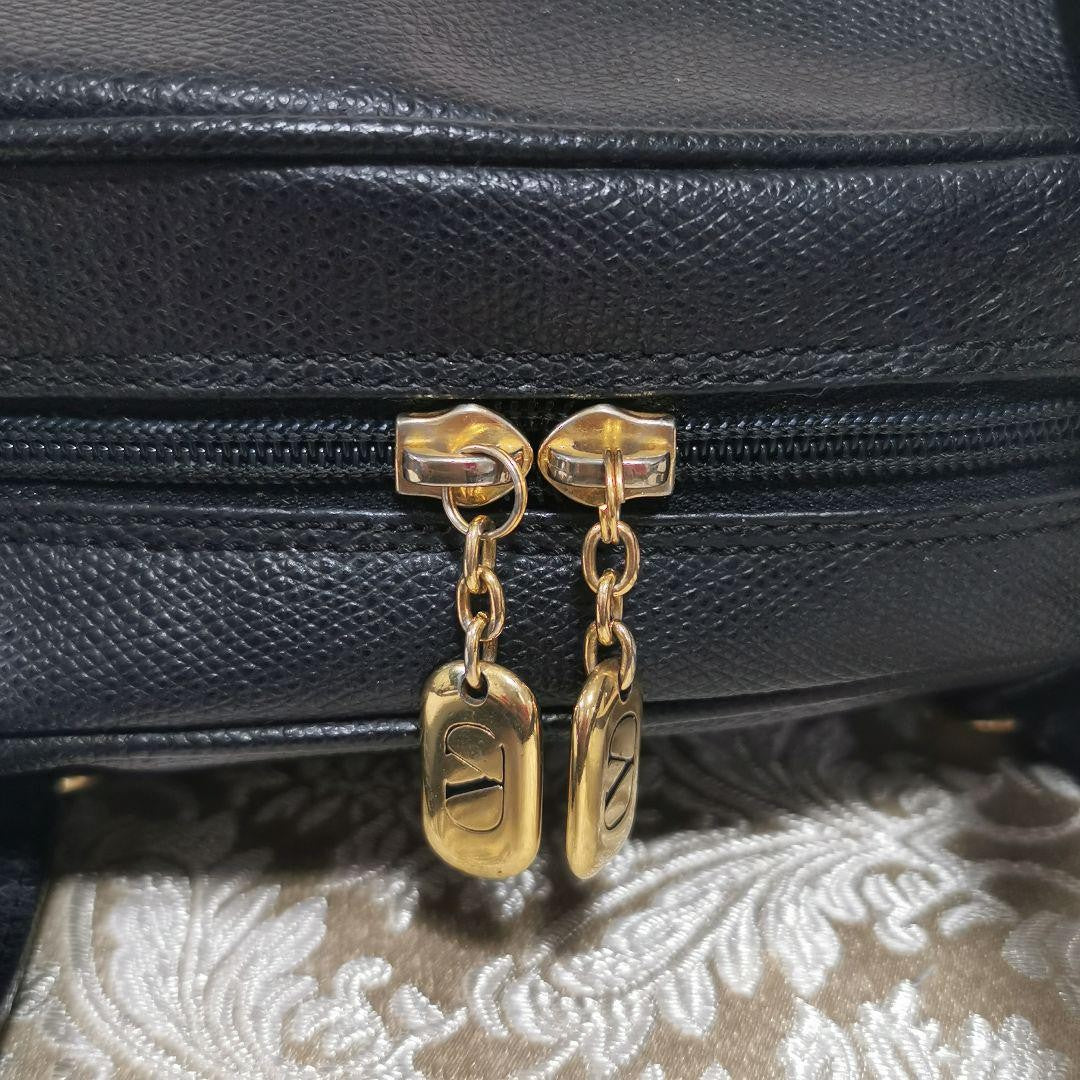 Valentino Garavani Shoulder Bag Purse Logo Leather Black Authentic