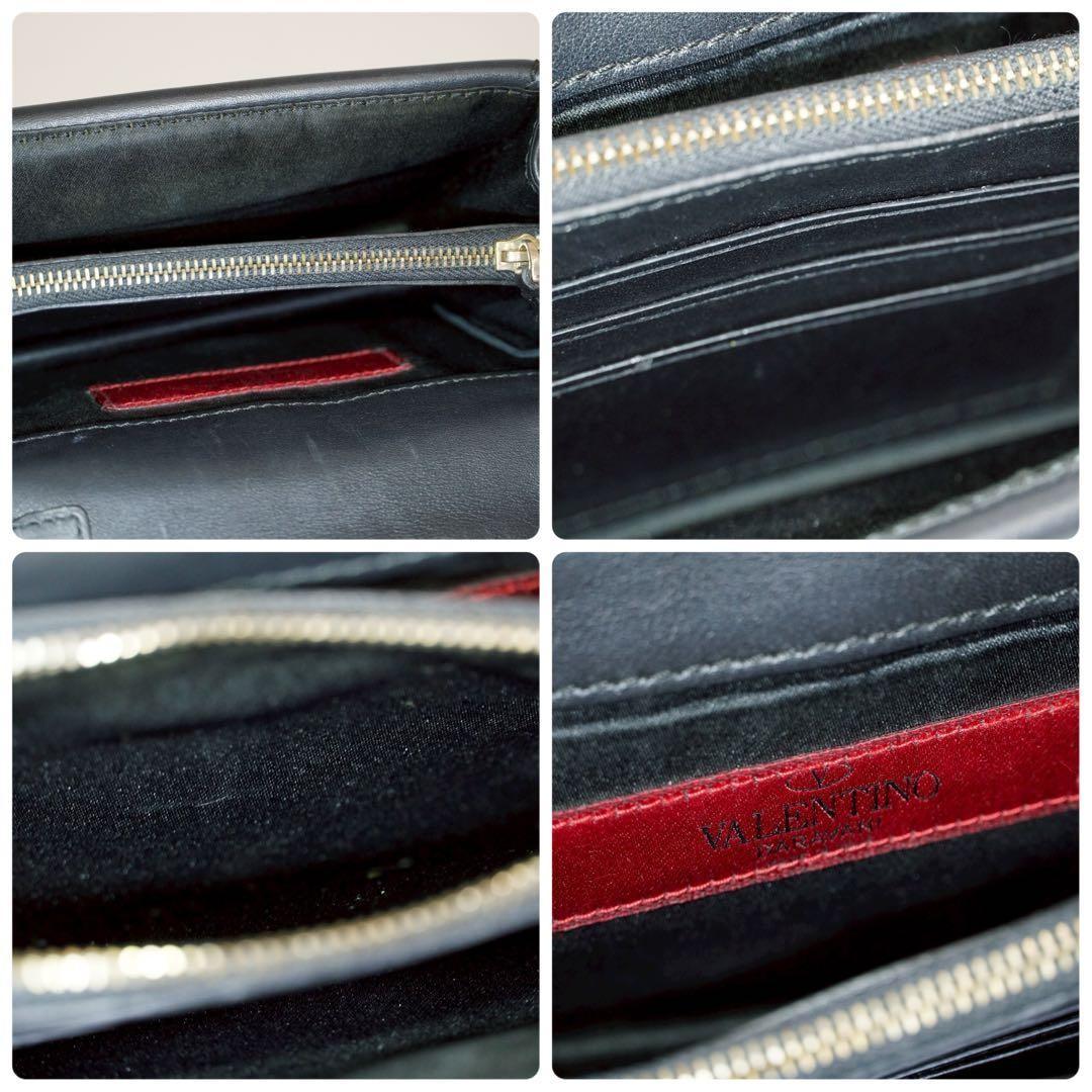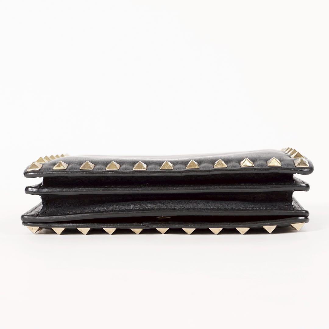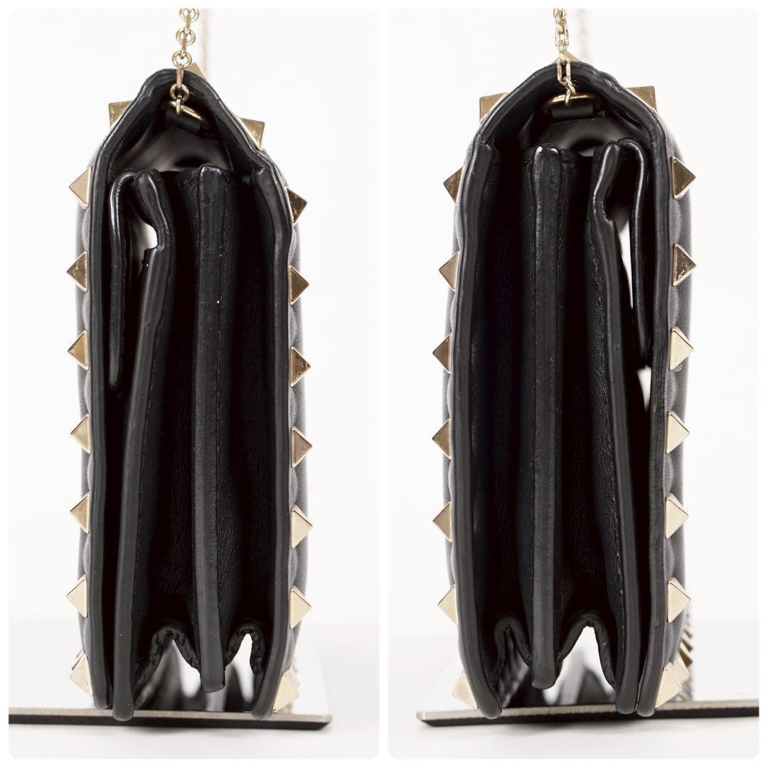 Valentino Garavani Shoulder Bag Purse Studs Leather Black Authentic