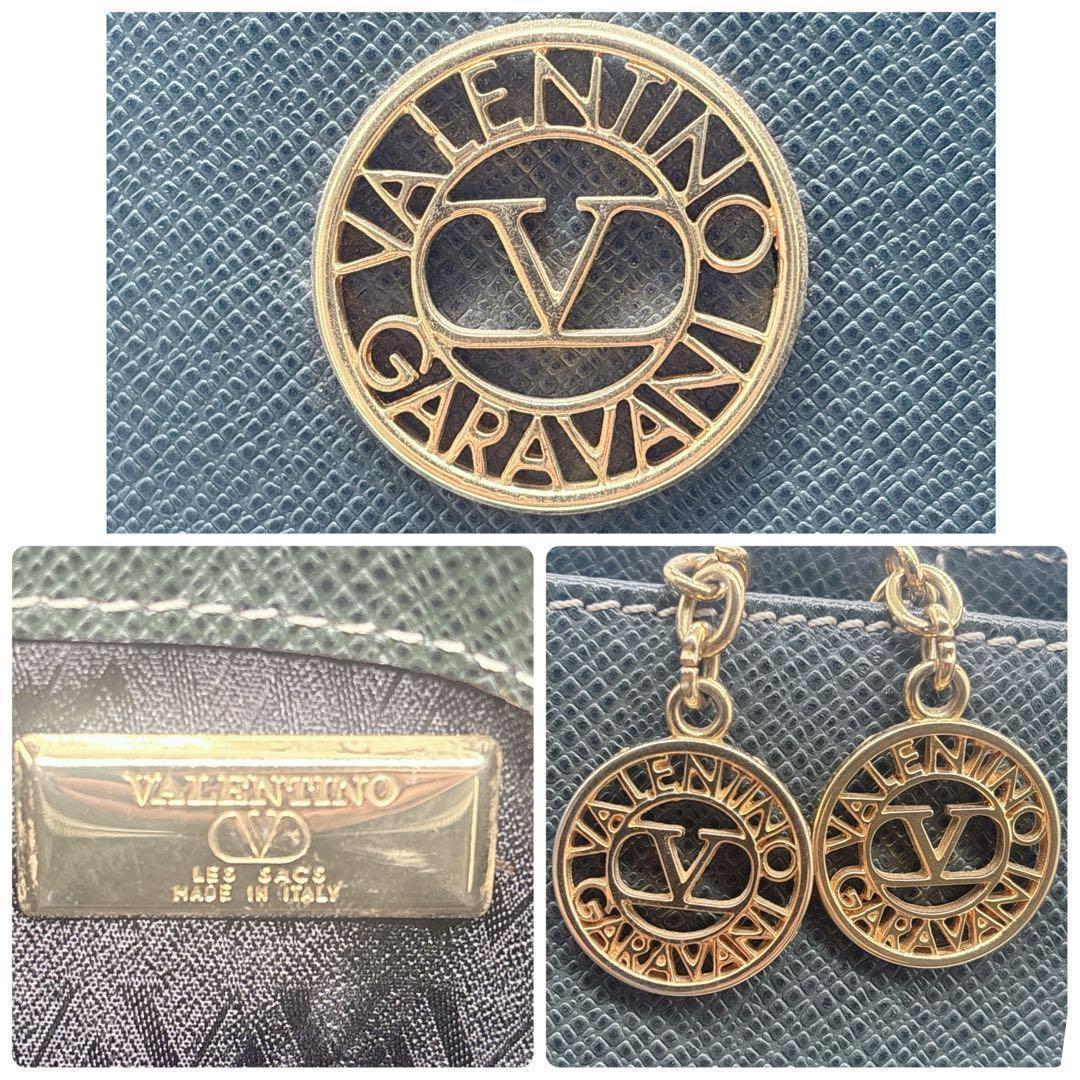 Valentino Garavani Shoulder Bag Purse V Logo Leather Dark Green Authentic