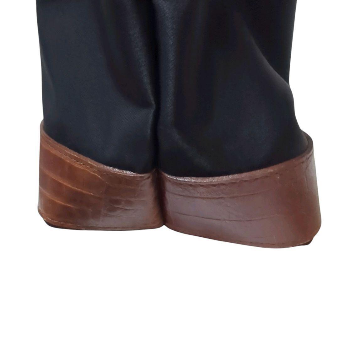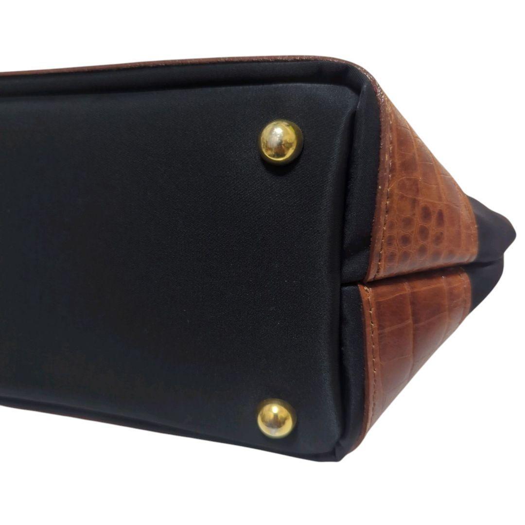 Valentino Garavani Sport Hand Bag Tote Purse Logo Nylon Leather Black Brown Auth