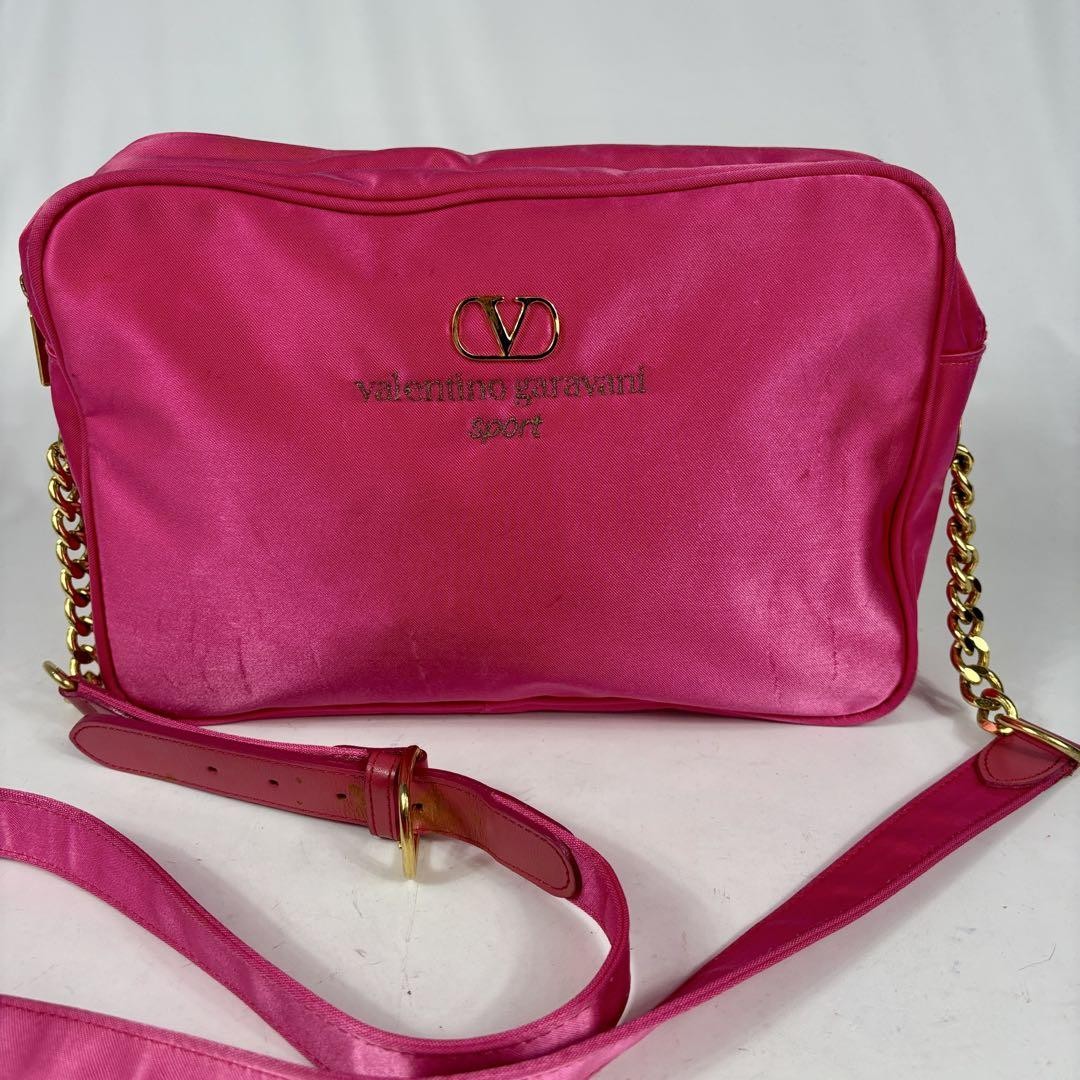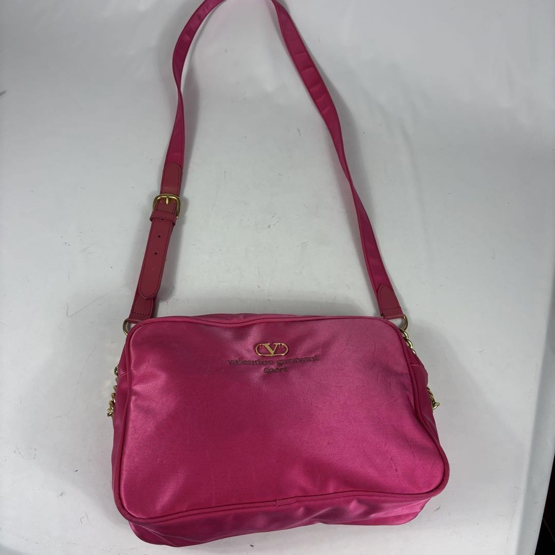 Valentino Garavani sport Shoulder Bag Purse Logo Nylon Leather Pink Authentic