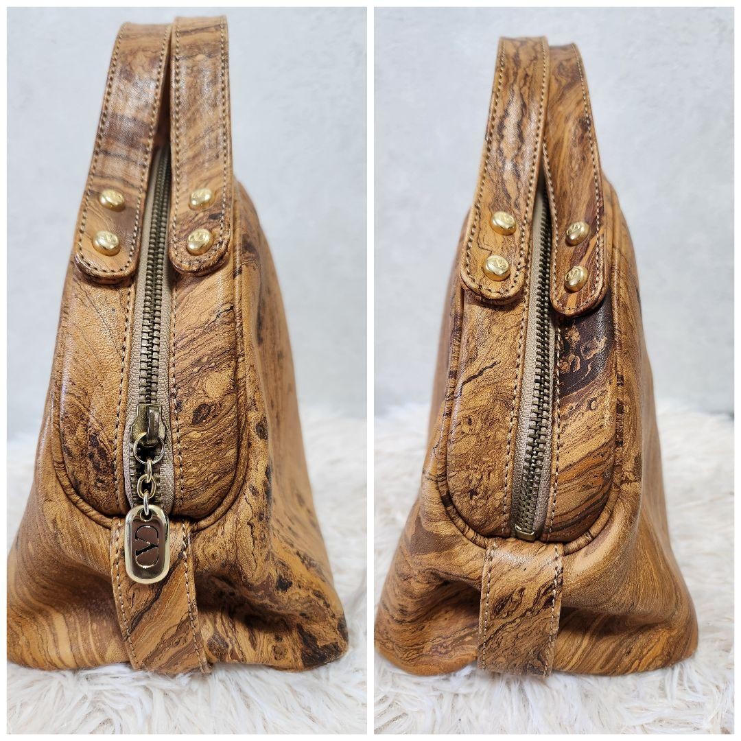 Valentino Hand Bag Tote Purse Logo Leather Brown Authentic