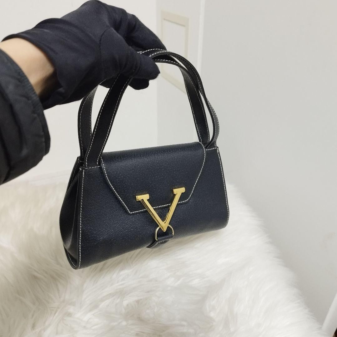 Valentino les sacs Hand Bag Tote Purse Leather Black Authentic