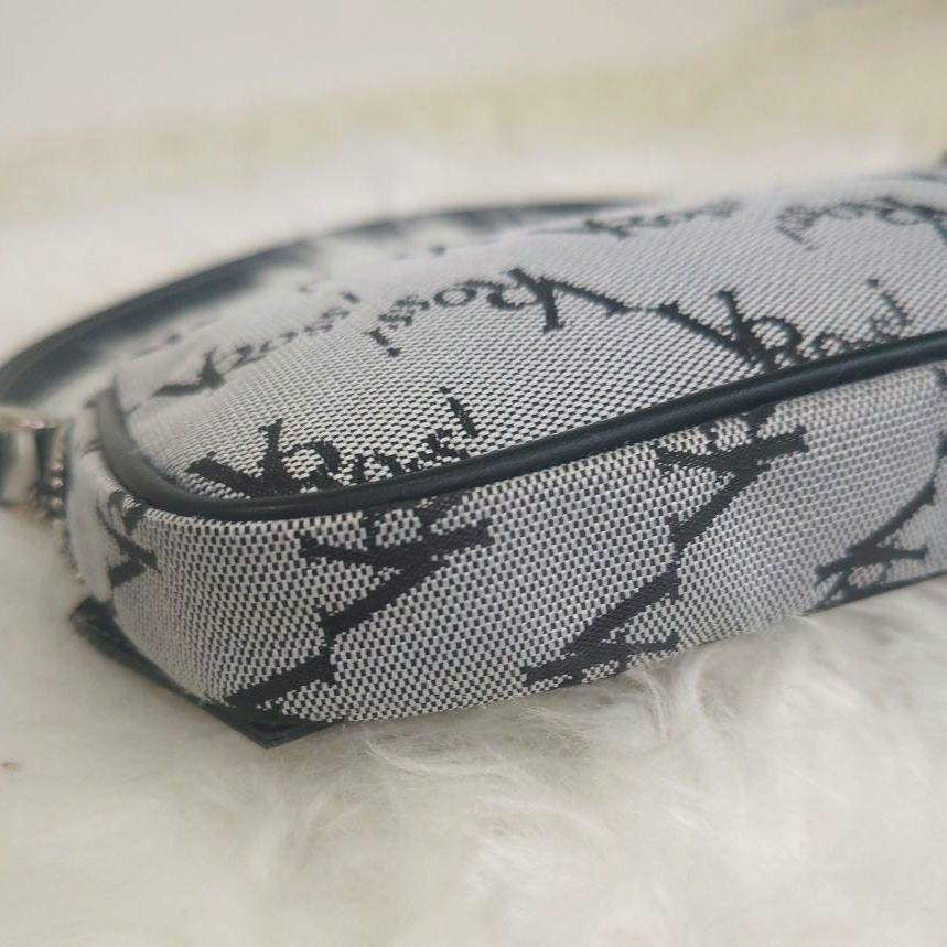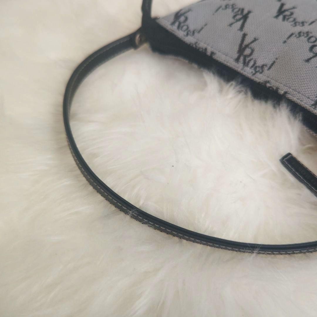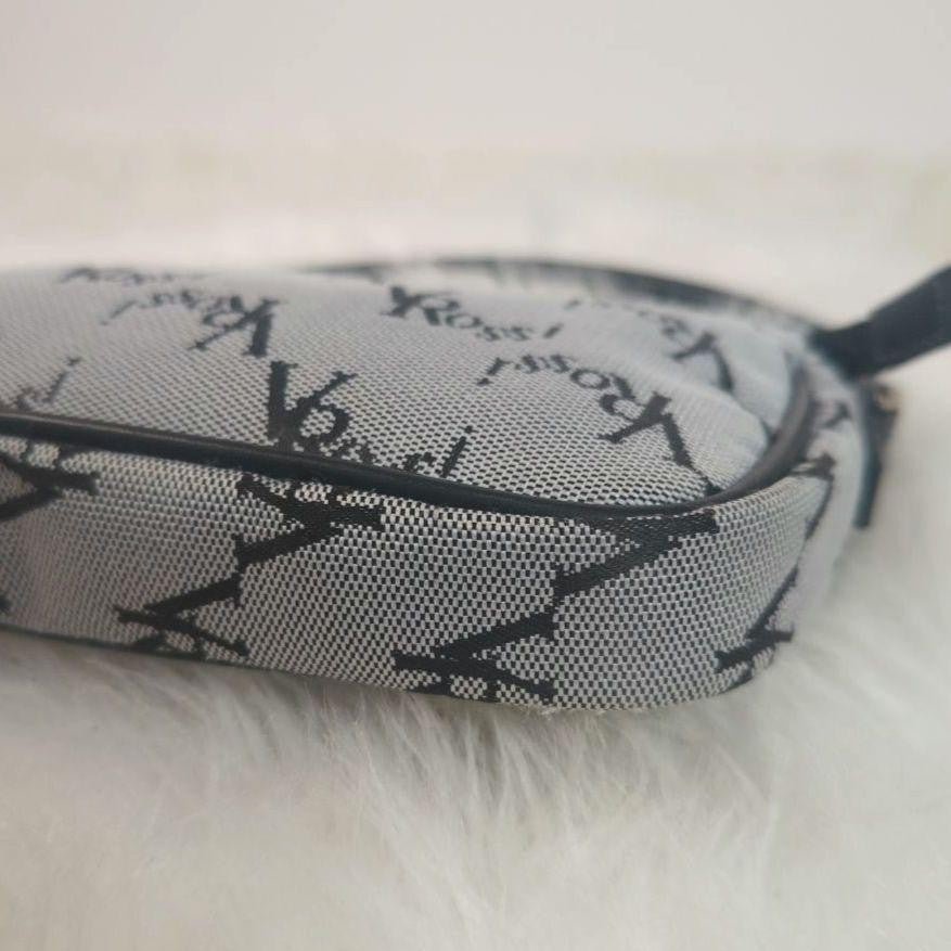 VALENTINO ROSSI Hand Bag Tote Purse Leather Canvas Black Gray Authentic