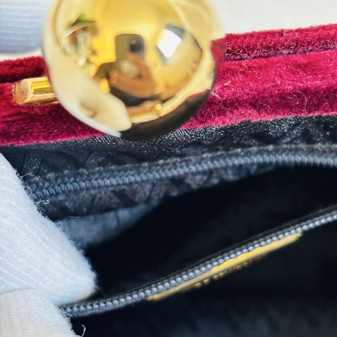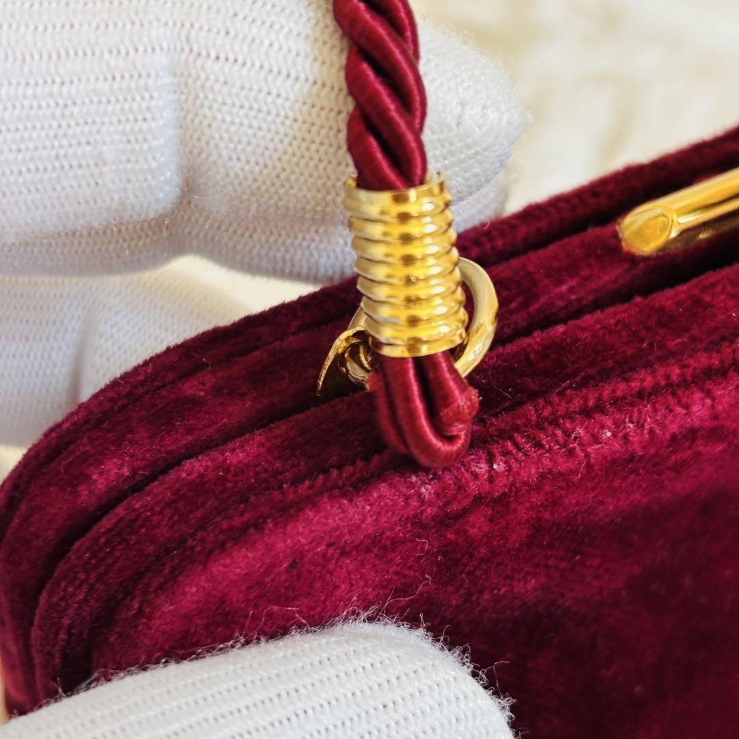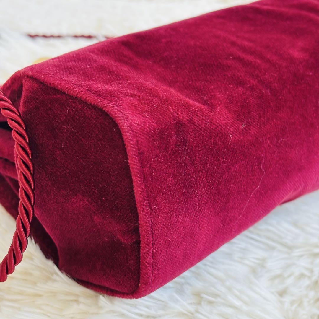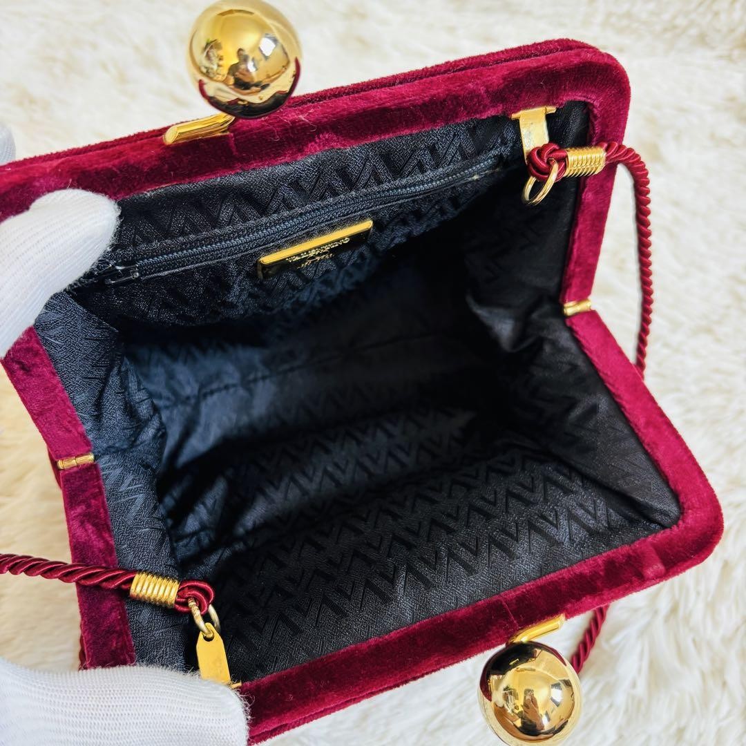 Valentino Shoulder Bag Purse Logo Velour Wine Red Authentic