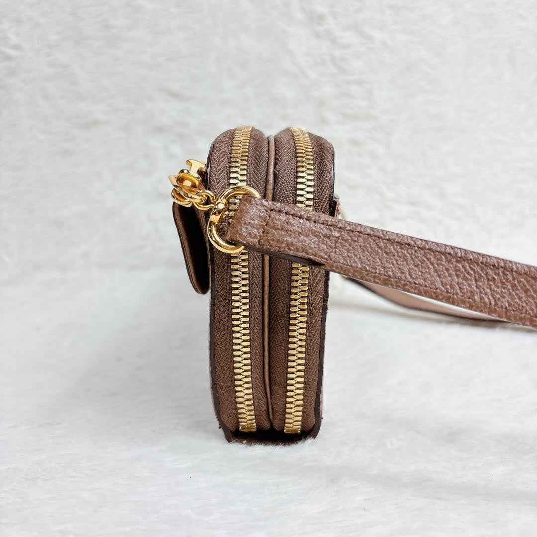 Valentino Shoulder Wallet Bag Purse Logo Leather Brown Authentic
