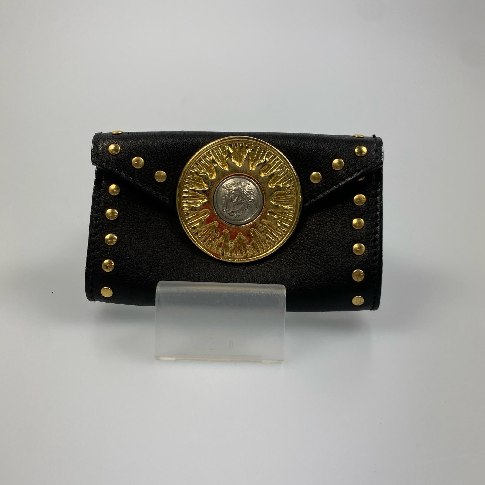 VERSACE Accessory Pouch Hand Pouch Sunburst Leather Authentic