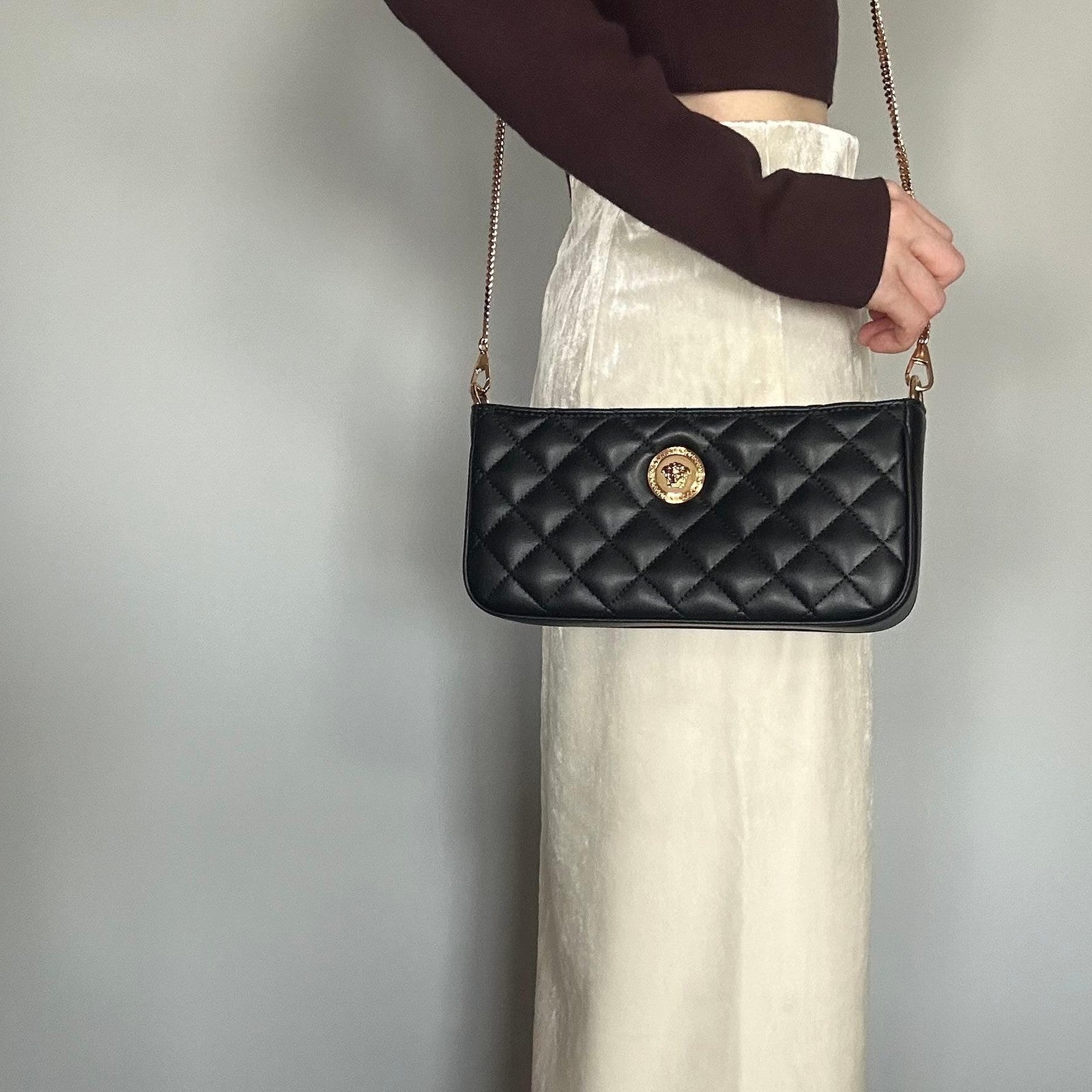 VERSACE Bag Medusa Chain Shoulder Purse Leather Black Chain Gold Used Authentic