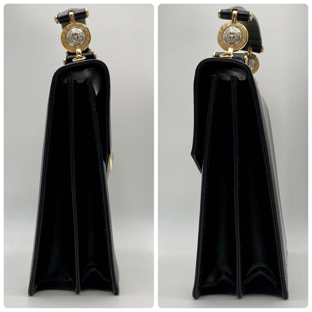VERSACE Hand Bag Tote Purse Medusa Leather Black Authentic
