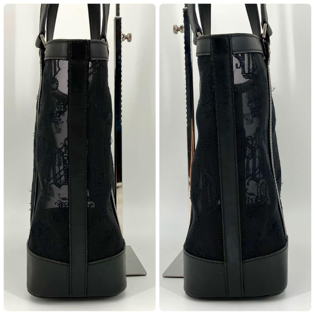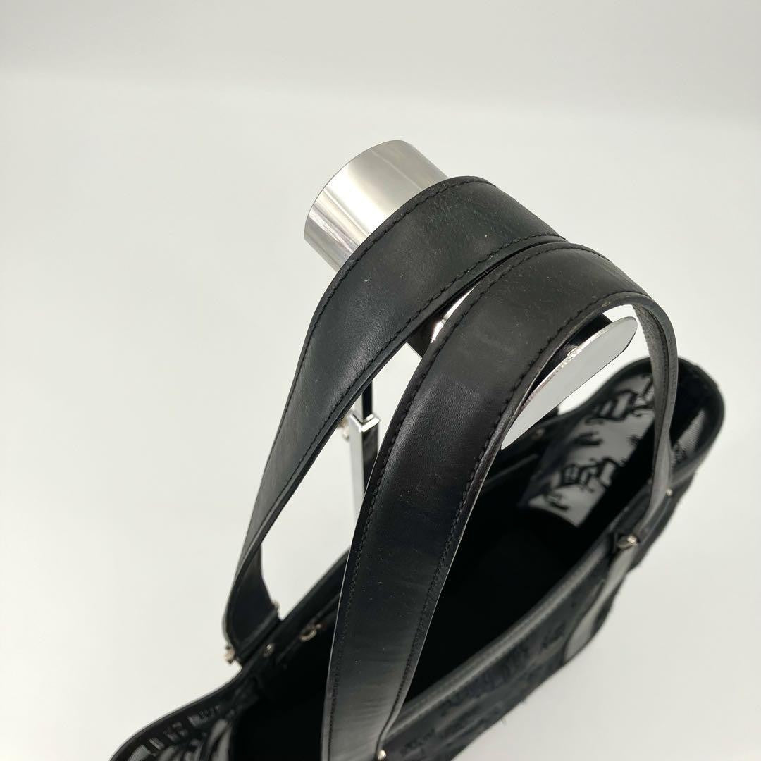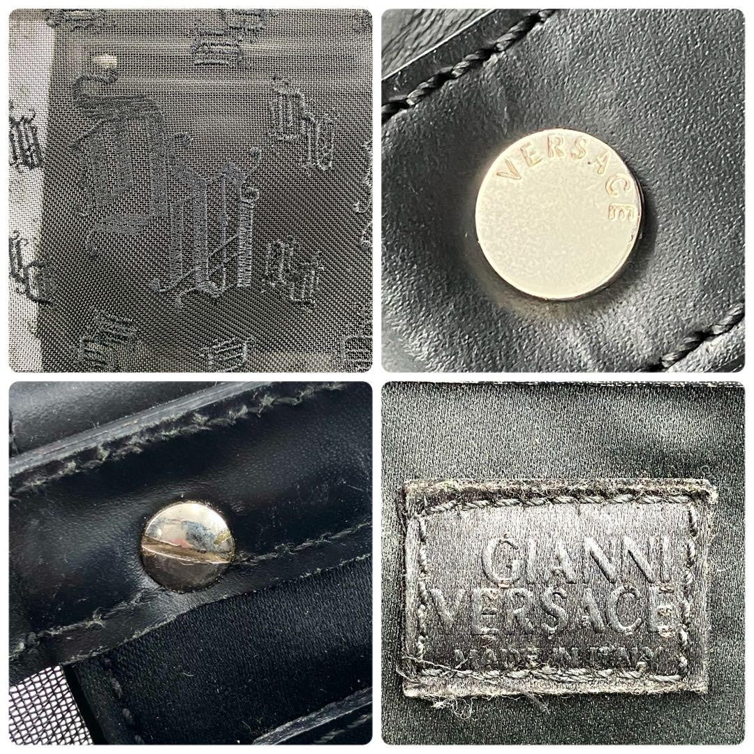 VERSACE Hand Bag Tote Purse Mesh Leather Black Authentic