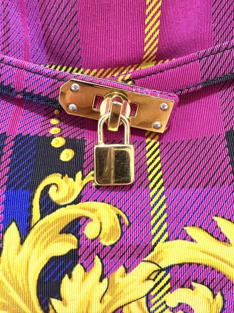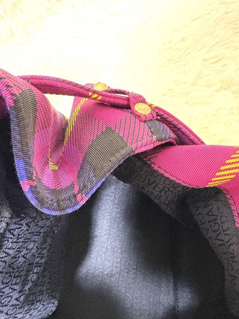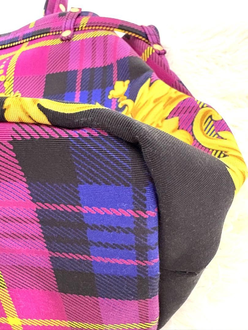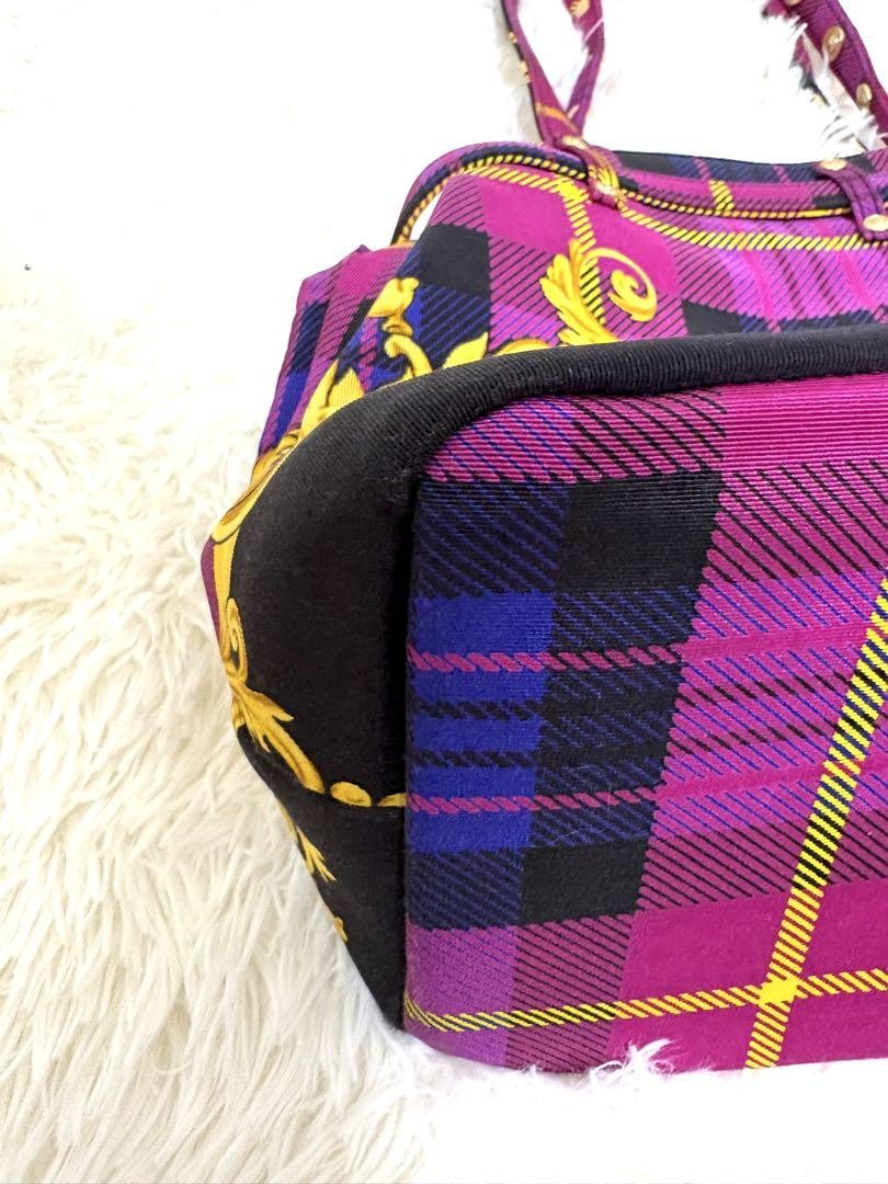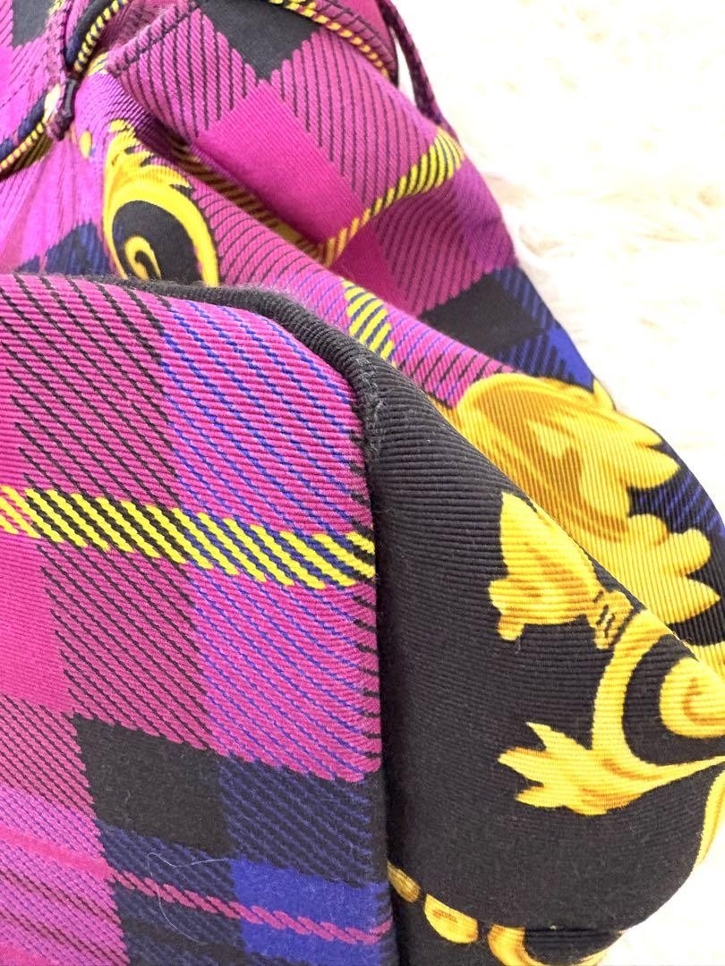 VERSACE Hand Bag Tote Purse Nylon Canvas Multicolor Pink Authentic