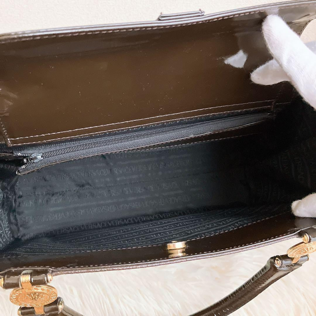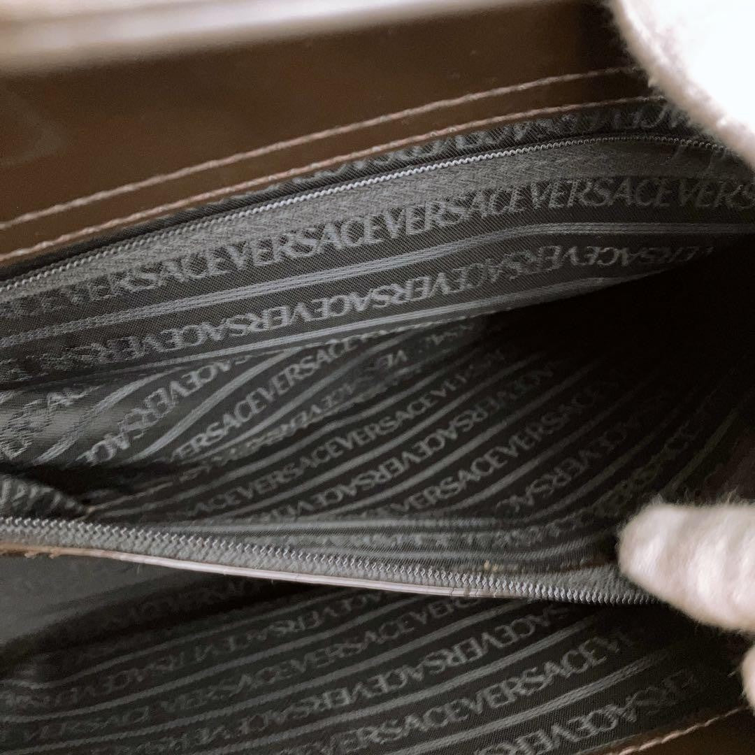VERSACE Hand Bag Tote Purse Sunburst Leather Brown Authentic