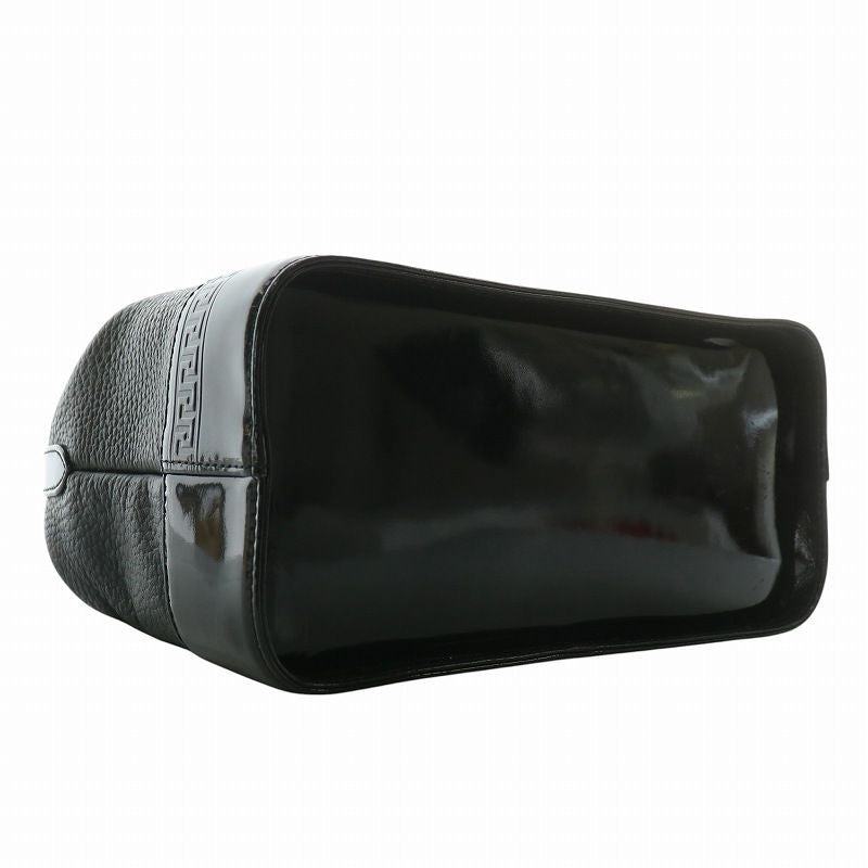 VERSACE Hand Bag Tote Purse Sunburst Patent Leather Black Authentic