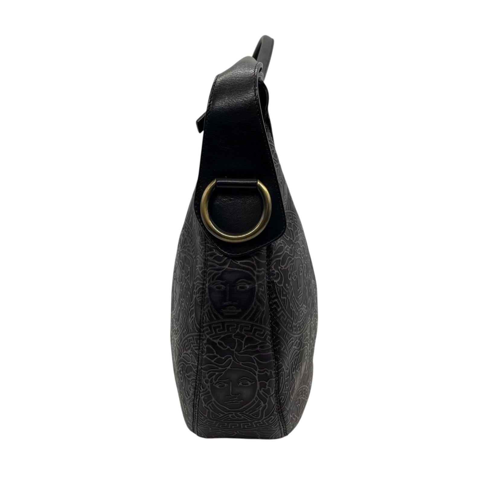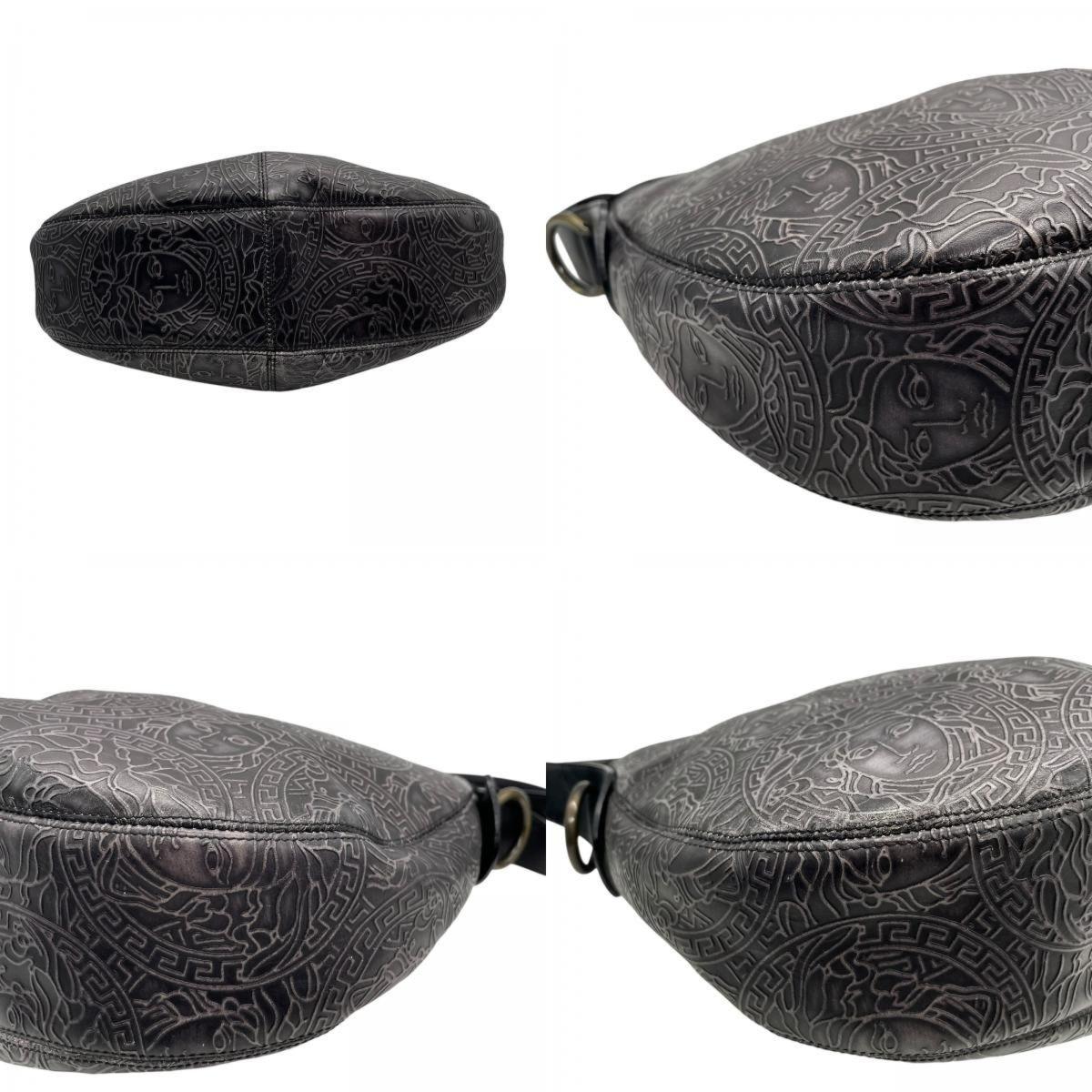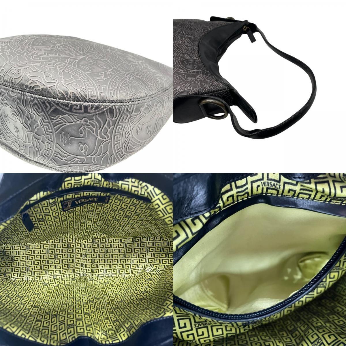 VERSACE Hand Shoulder Bag Tote Purse Medusa Leather Black Gray Authentic