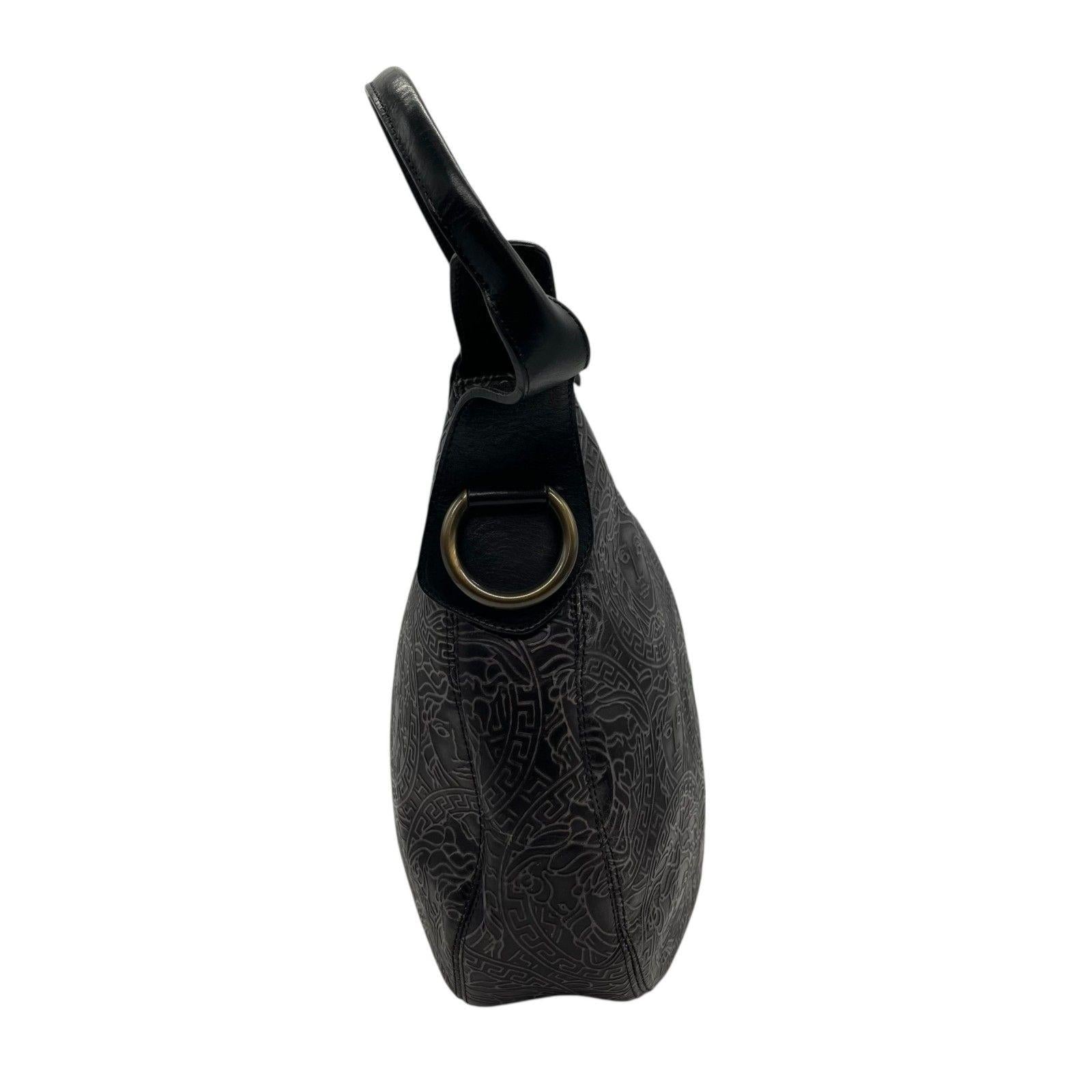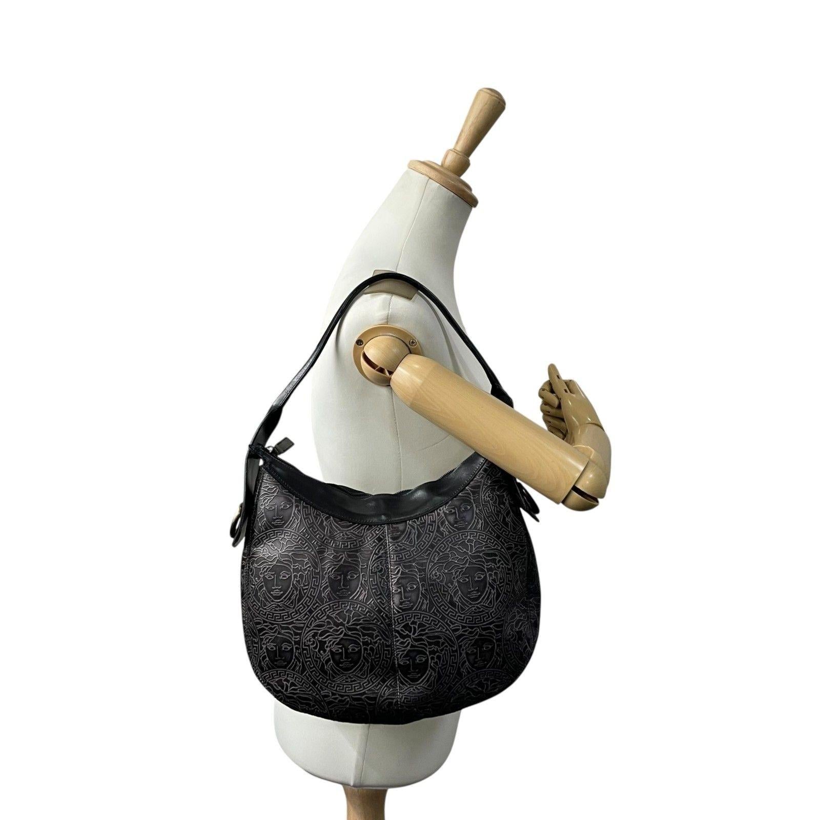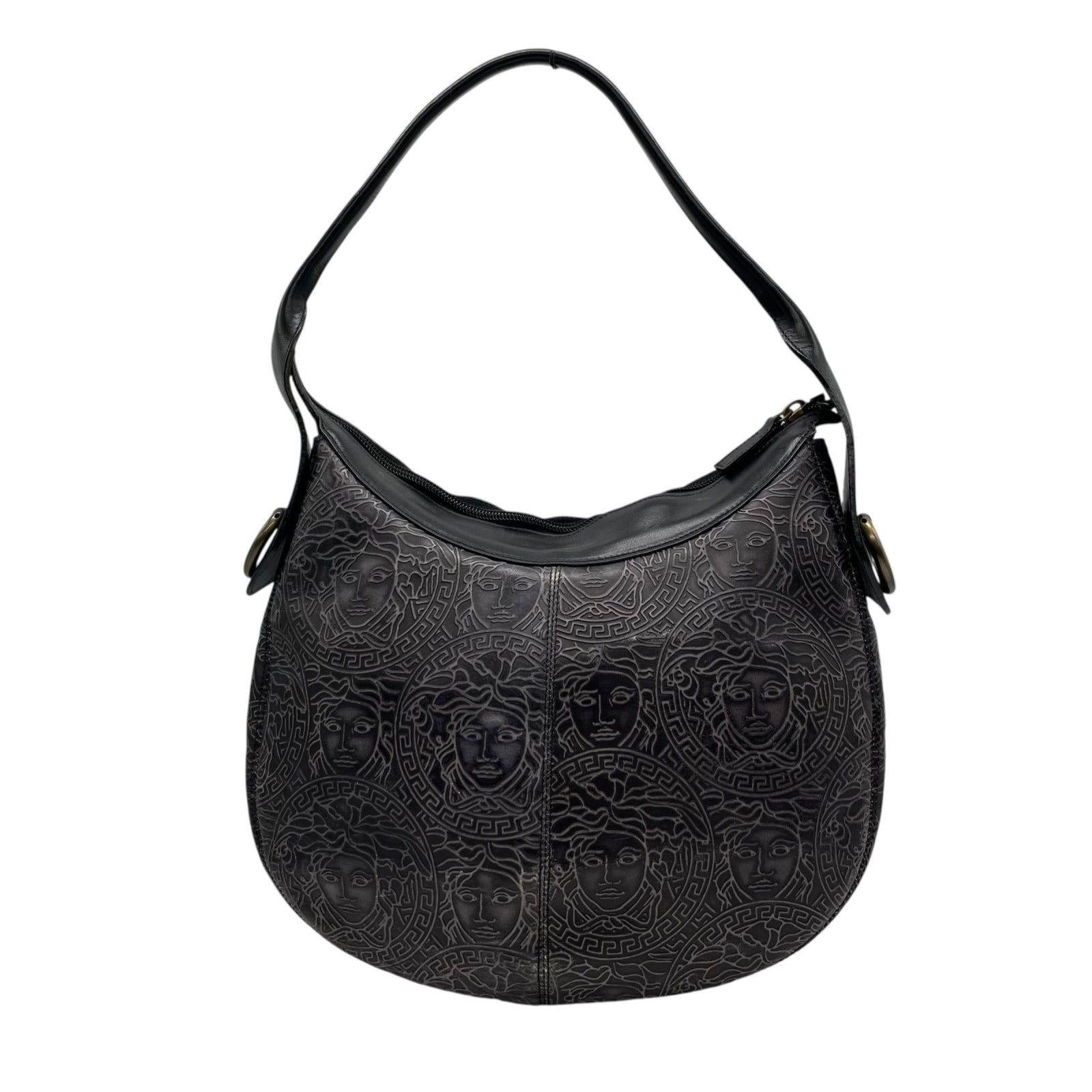 VERSACE Hand Shoulder Bag Tote Purse Medusa Leather Black Gray Authentic