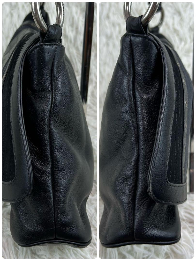 VERSACE Shoulder Bag Purse Leather Suede Black Authentic