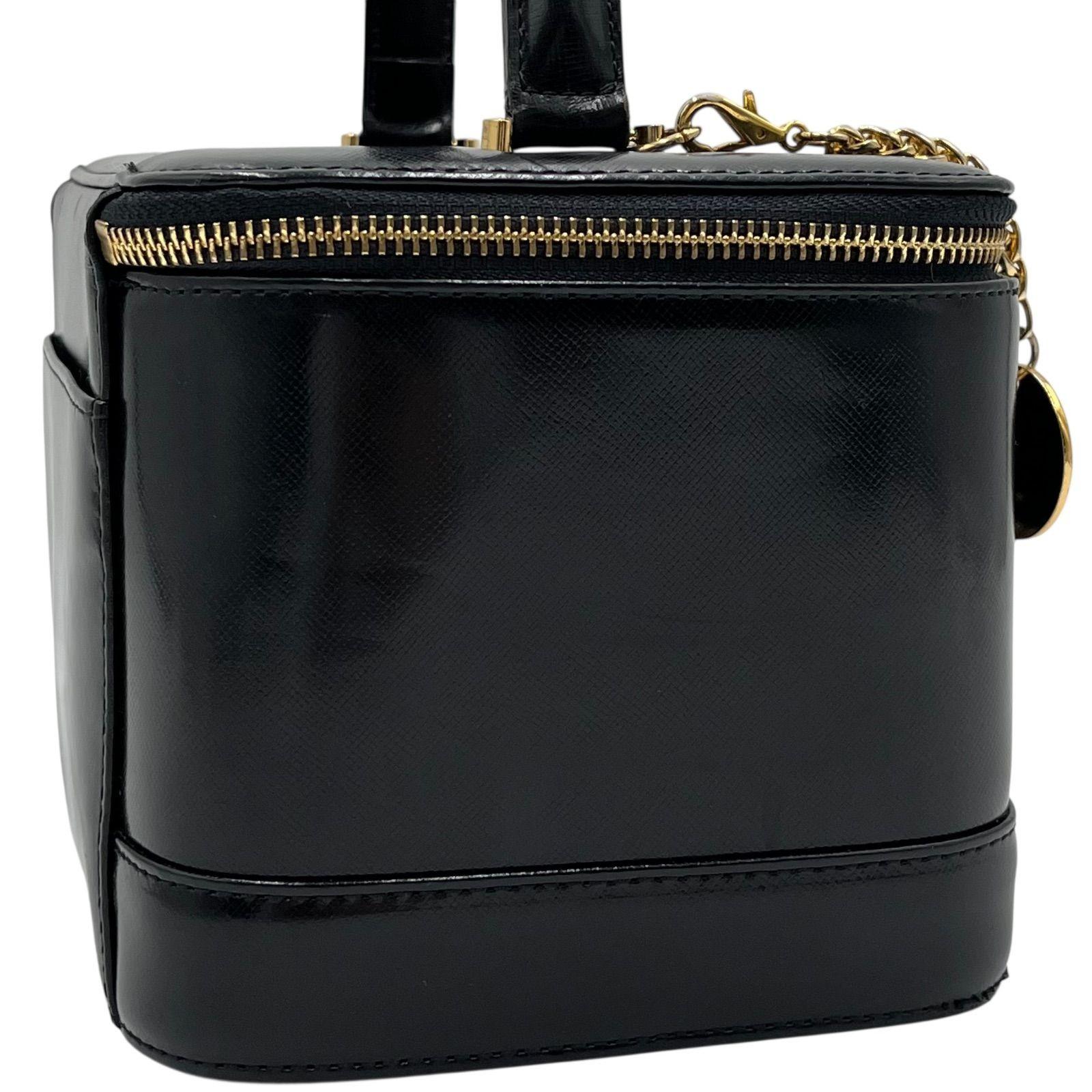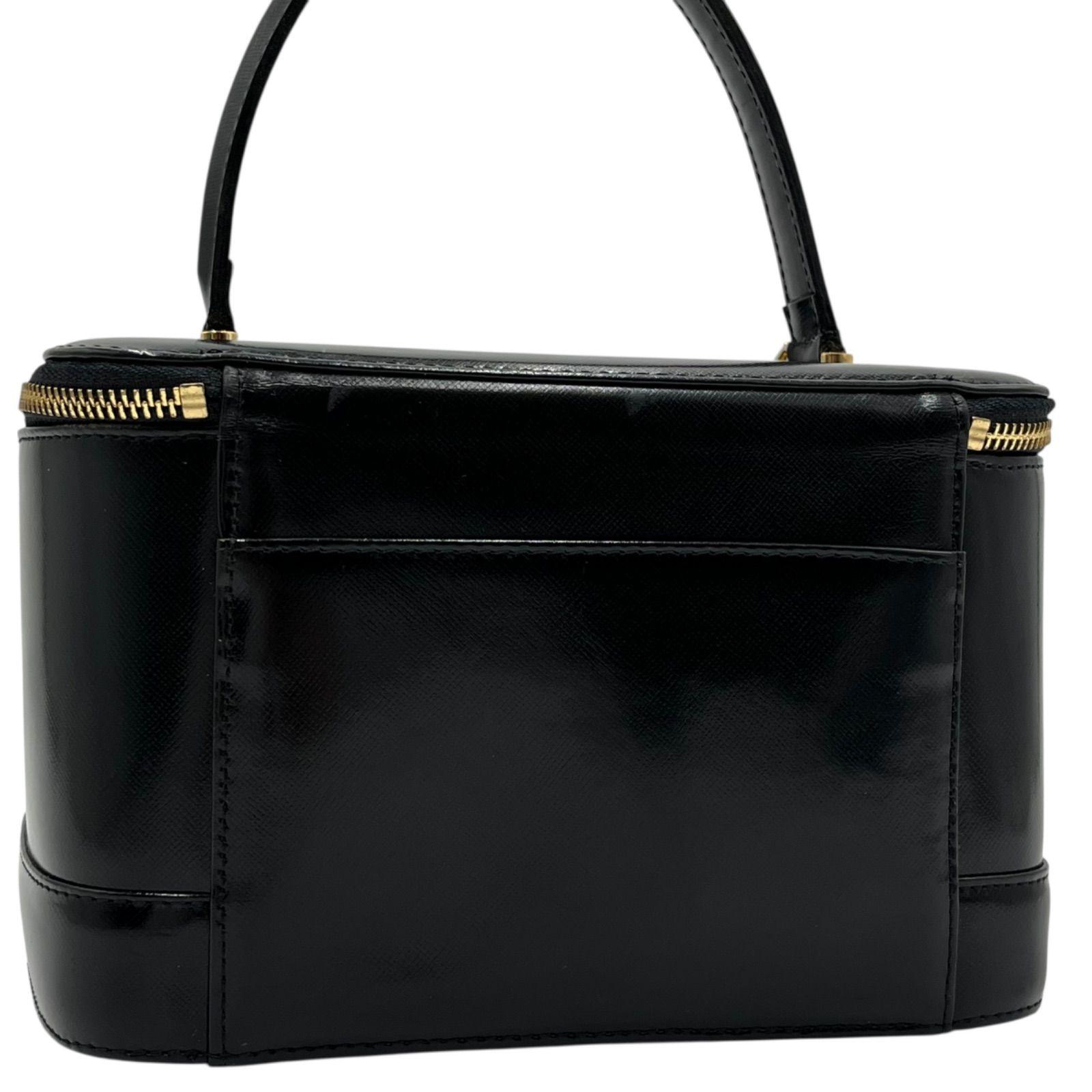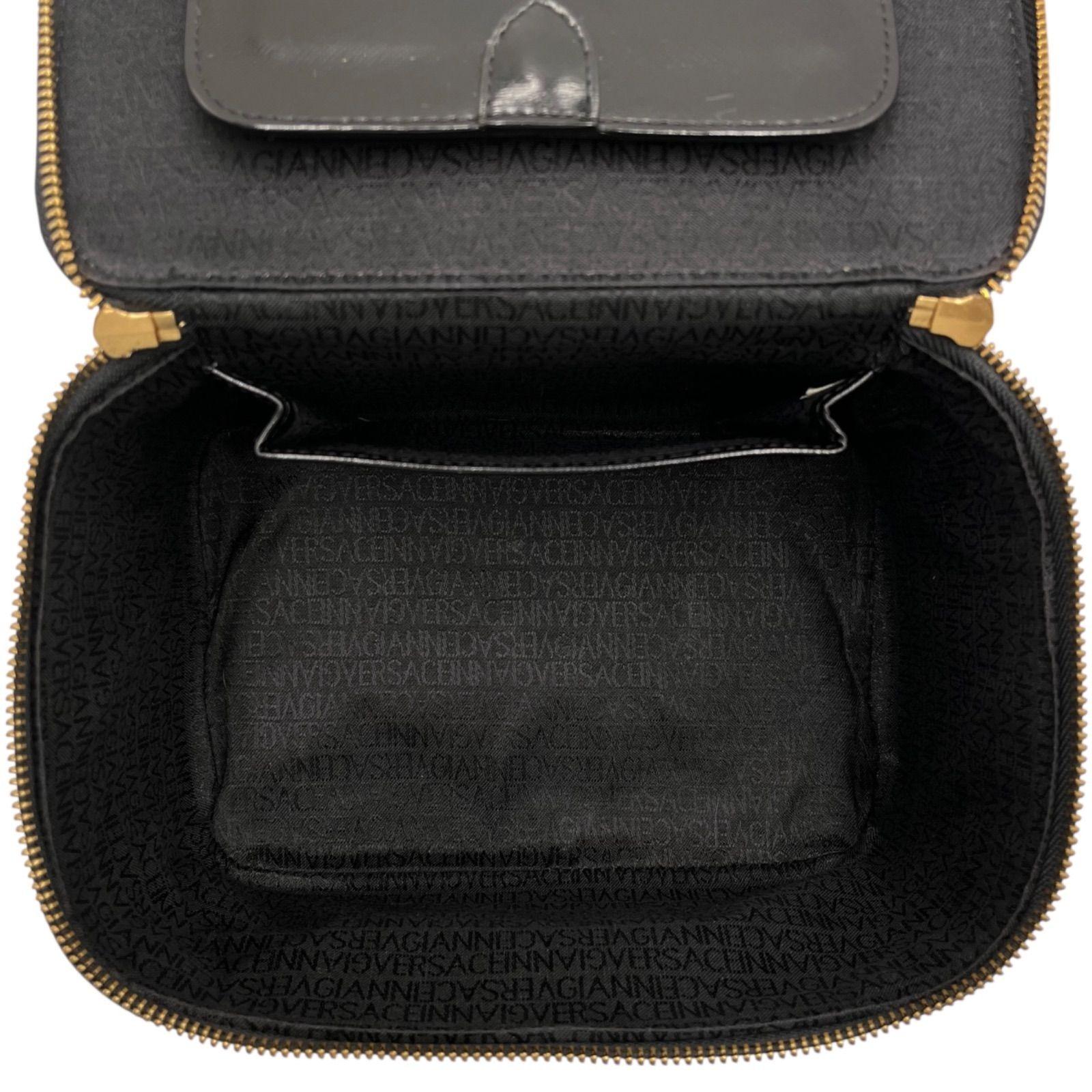 VERSACE Vanity Bag Accessory Pouch Hand Pouch Sunburst Leather Black Authentic