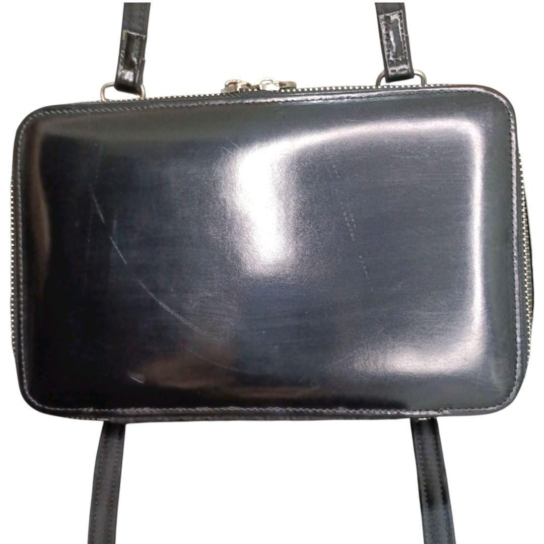 VERSACE Vanity Hand Bag Tote Purse Sunburst Nylon Leather Black Authentic
